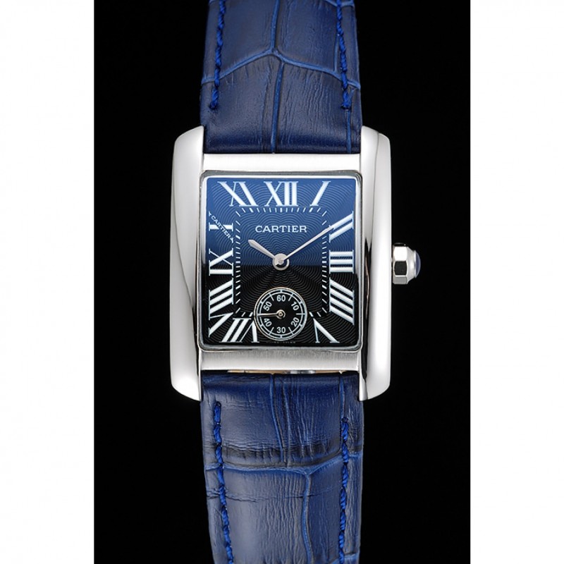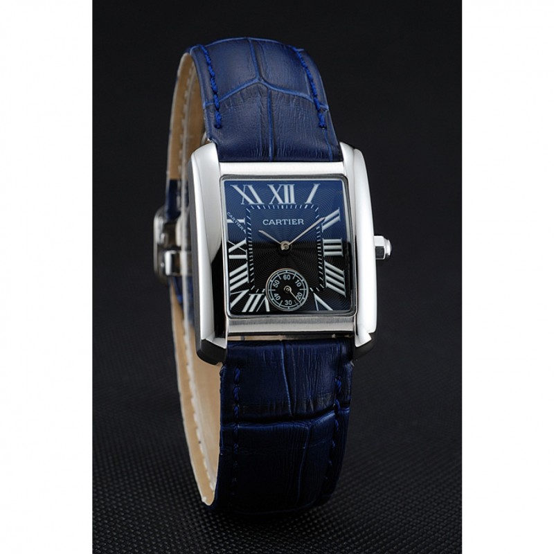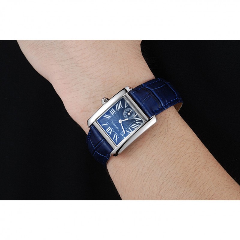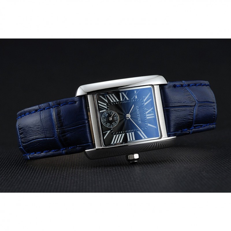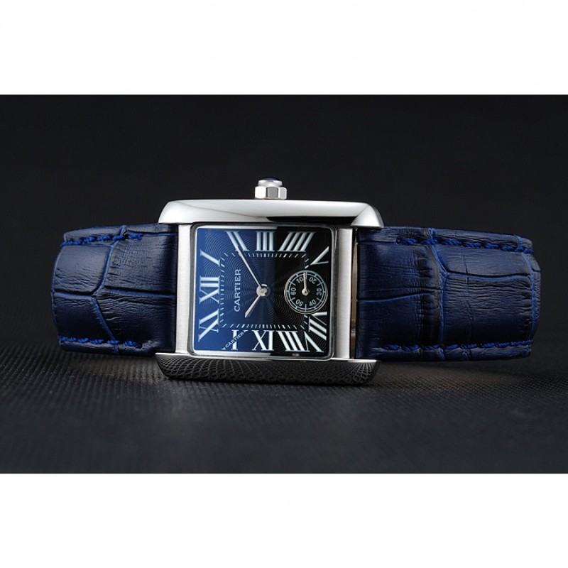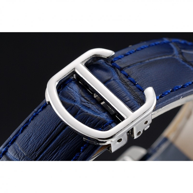 Bracelet:chaleur Cartier en relief crocodile bleu bracelet en cuir avec pliage en boucle en acier inoxydable poli