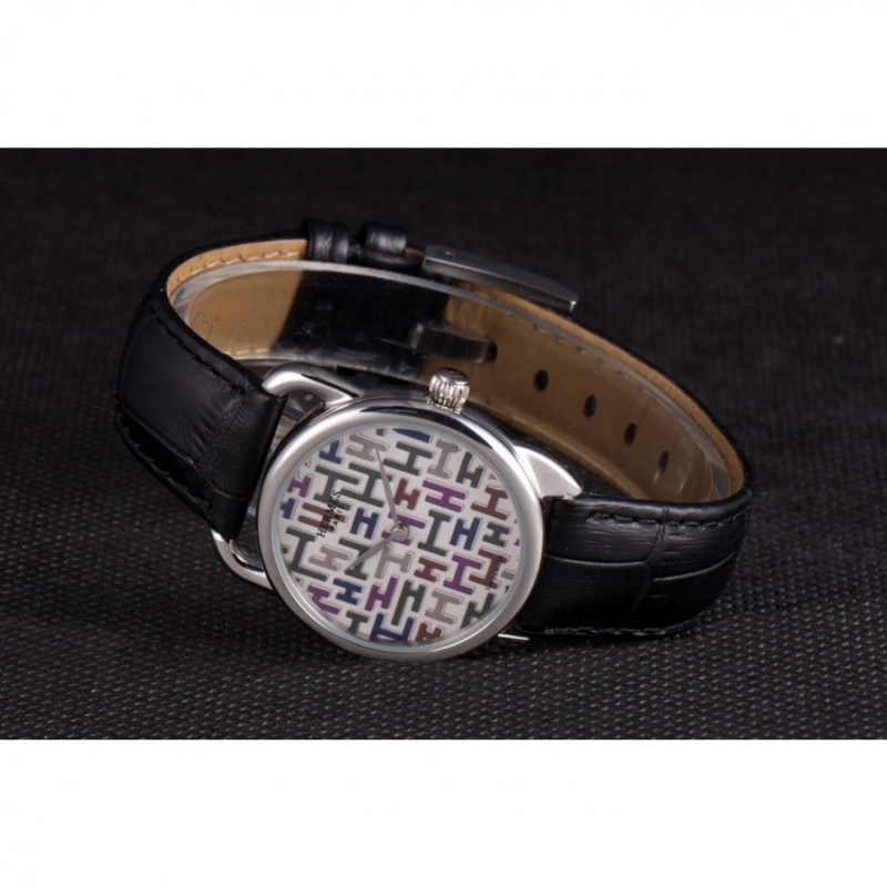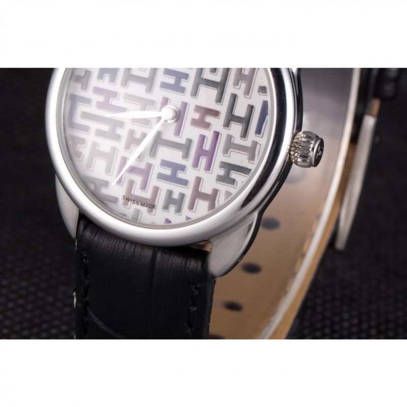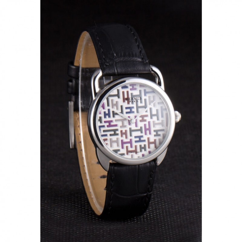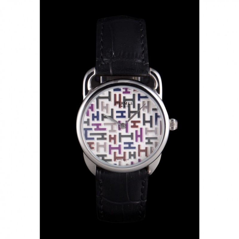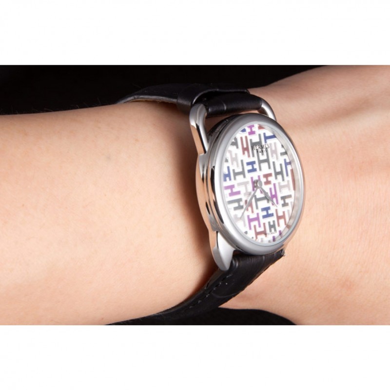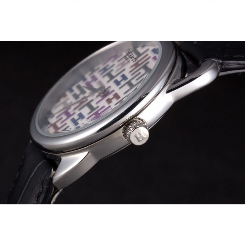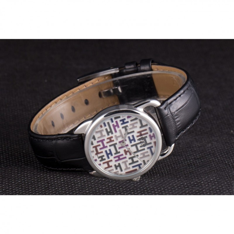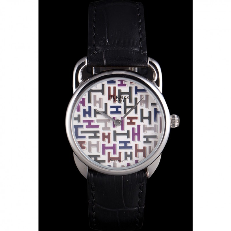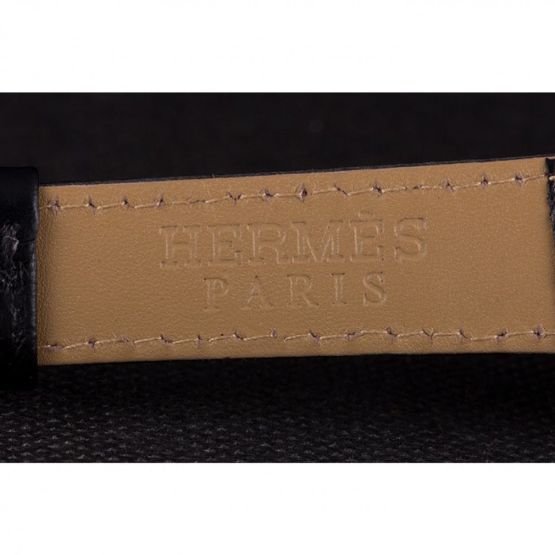 Bracelet:Hermes Paris chaleur bracelet en cuir estampé crocodile noir avec insigne inscrit fermoir crochet-boucle en acier inoxydable poli