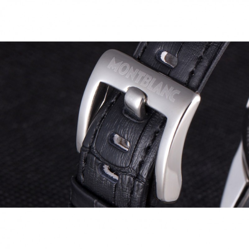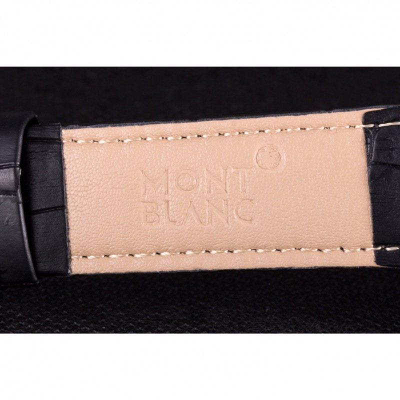 Bracelet:MontBlanc chaleur bracelet en cuir crocodile noir en relief avec MontBlanc inscrit en acier inoxydable poli fermoir crochet-boucle