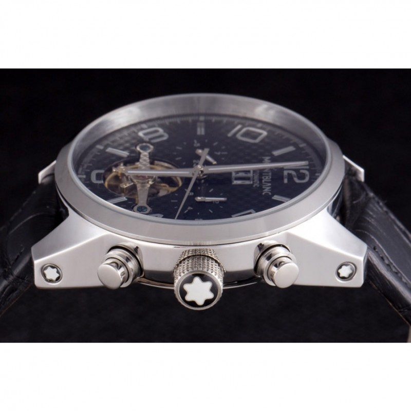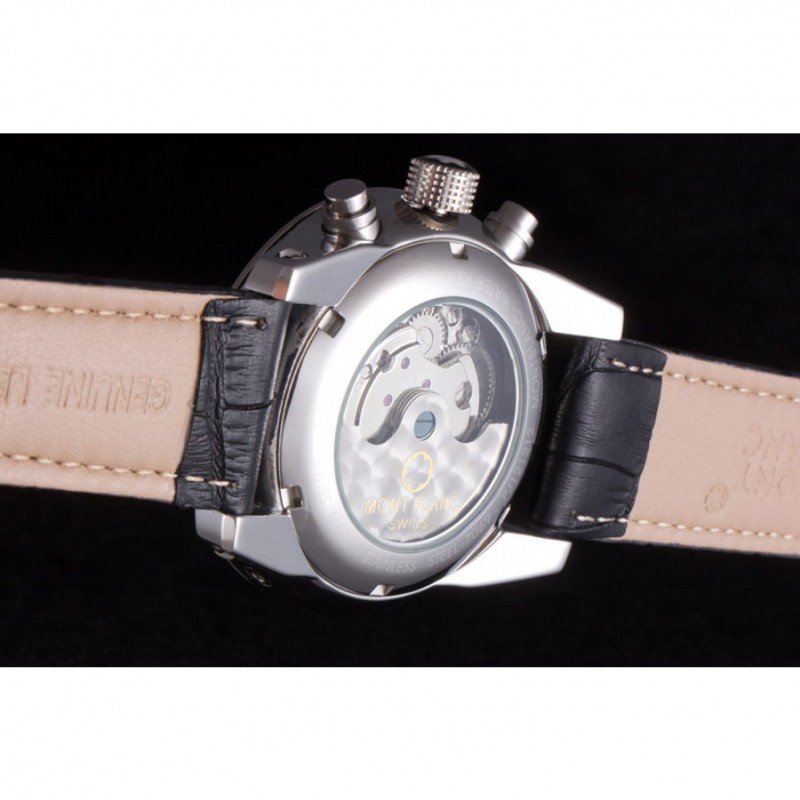 Couronne:MontBlanc logo goujon en acier inoxydable poli couronne striée et une couronne de bouton-poussoir de chaque côté il