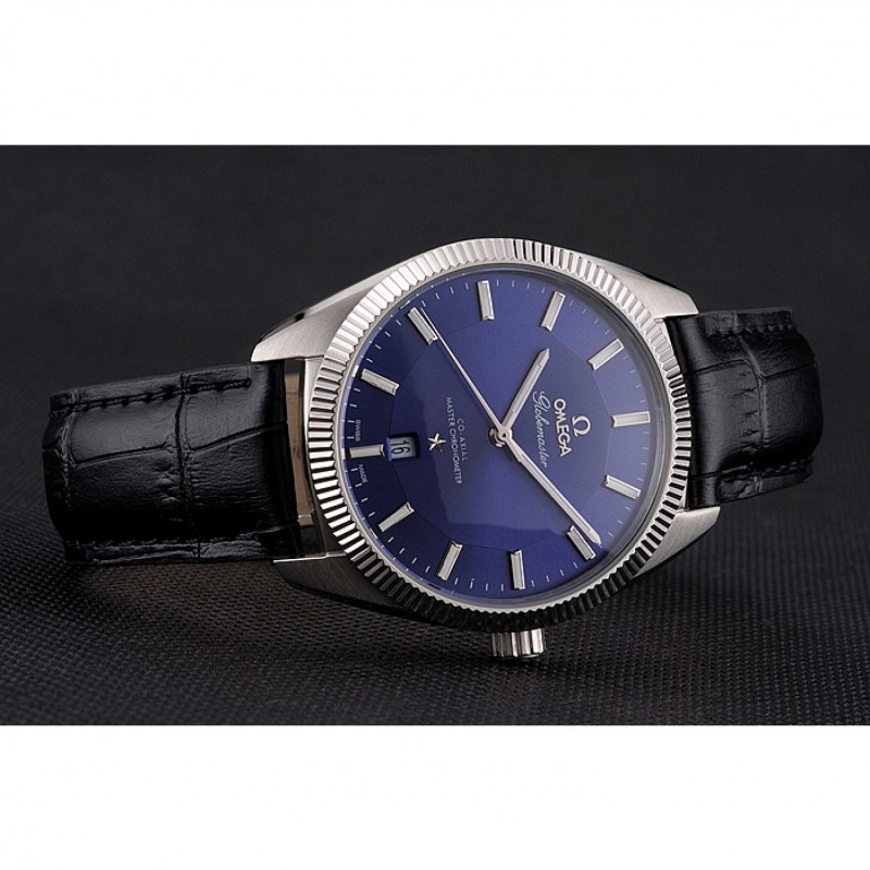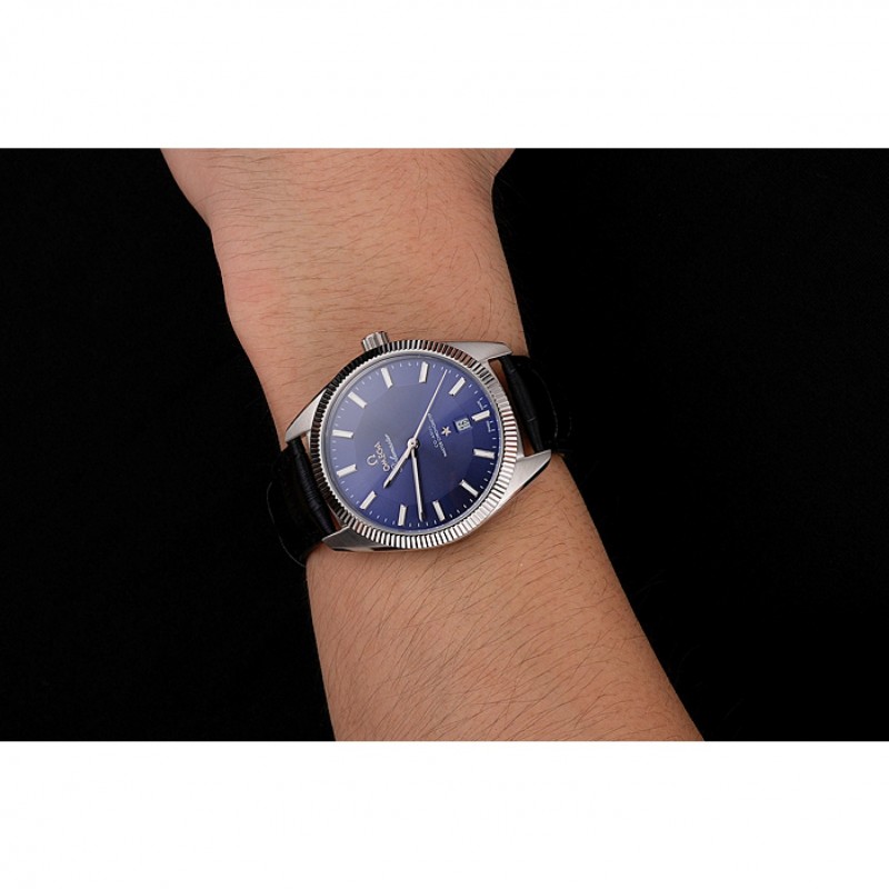 Bracelet:logo et la chaleur Omega gaufrée bracelet en cuir de crocodile noir avec le logo inscrit crochet fermoir en acier inoxydable poli