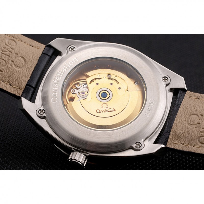 Retour:Logo et Omega gravé en acier inoxydable brossé acier vissé en arrière avec la mécanique révélant transparente centre