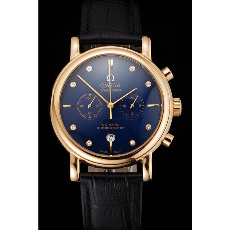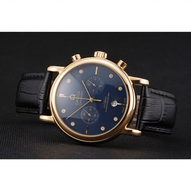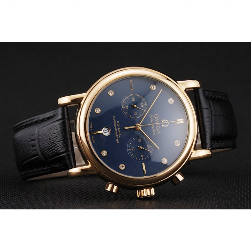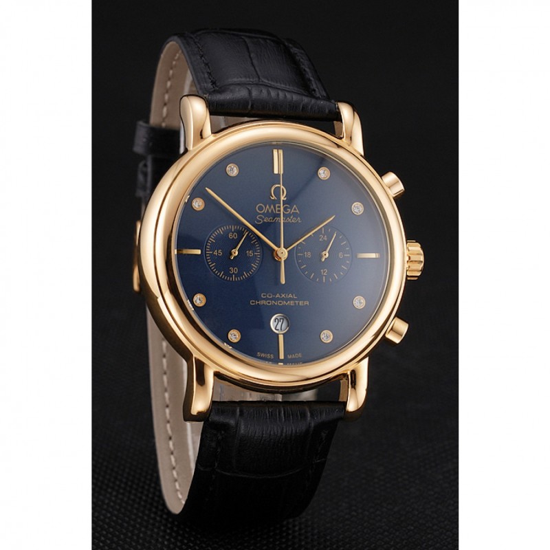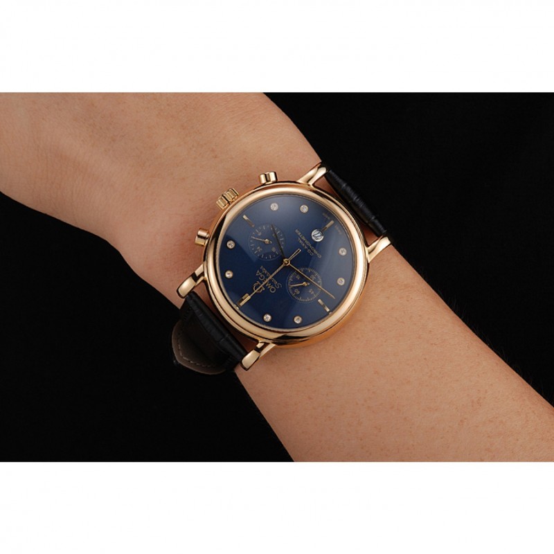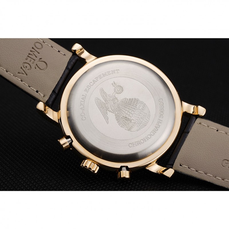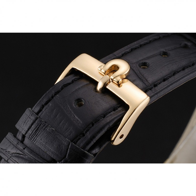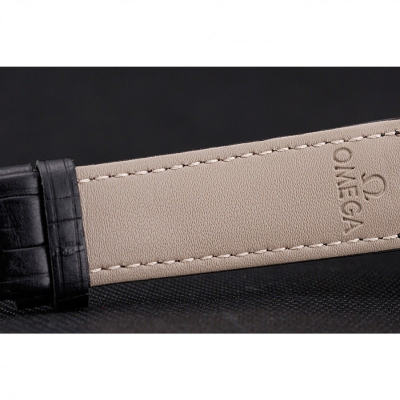 Bracelet:Omega et logo chaleur en relief bracelet en cuir crocodile noir avec logo Omega 18k sculpté rose plaqué or fermoir crochet-boucle