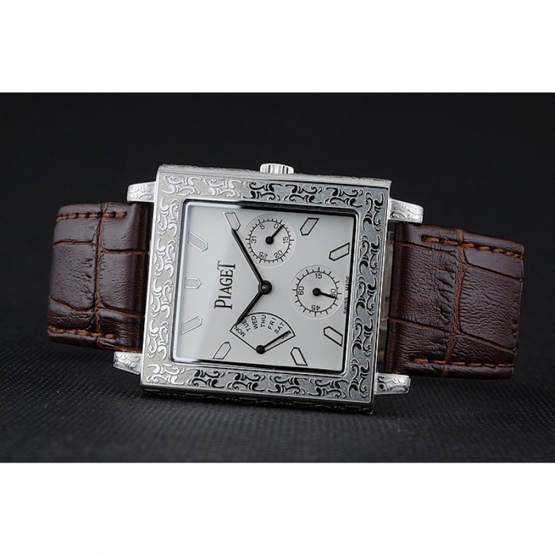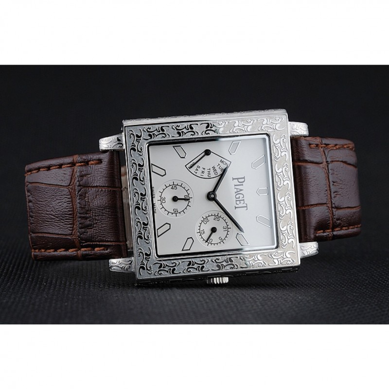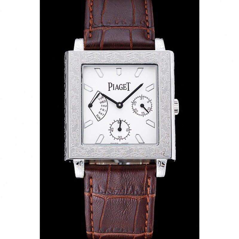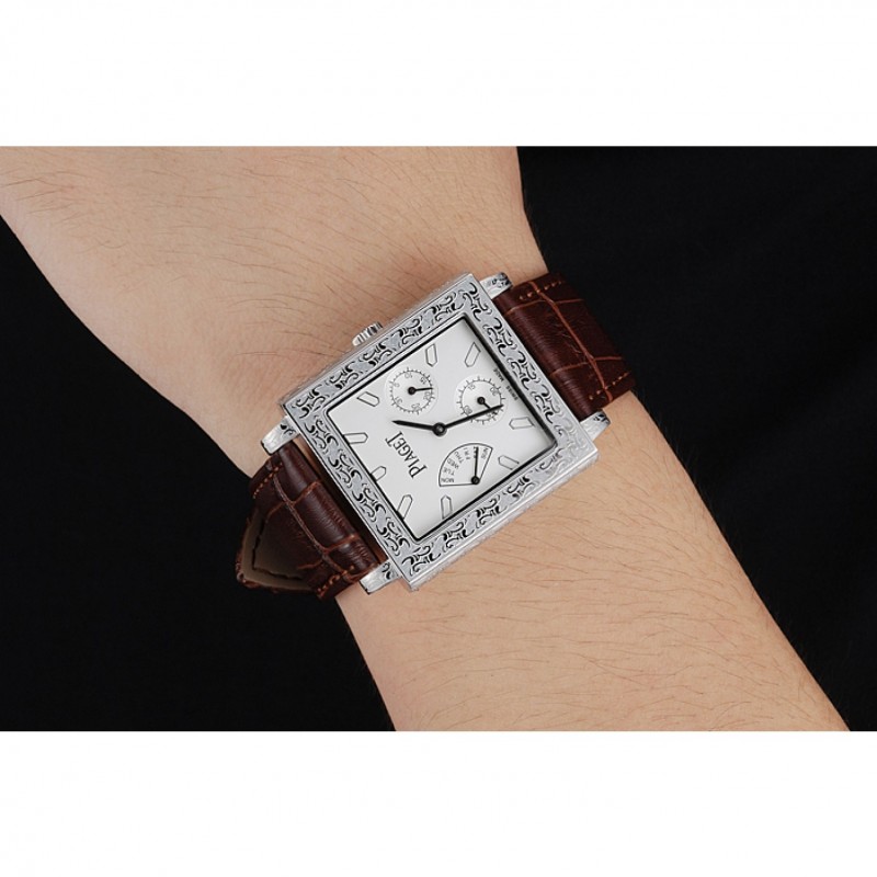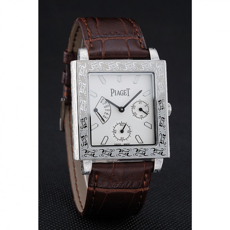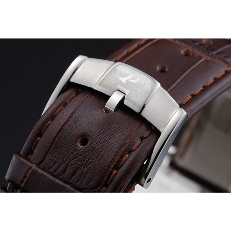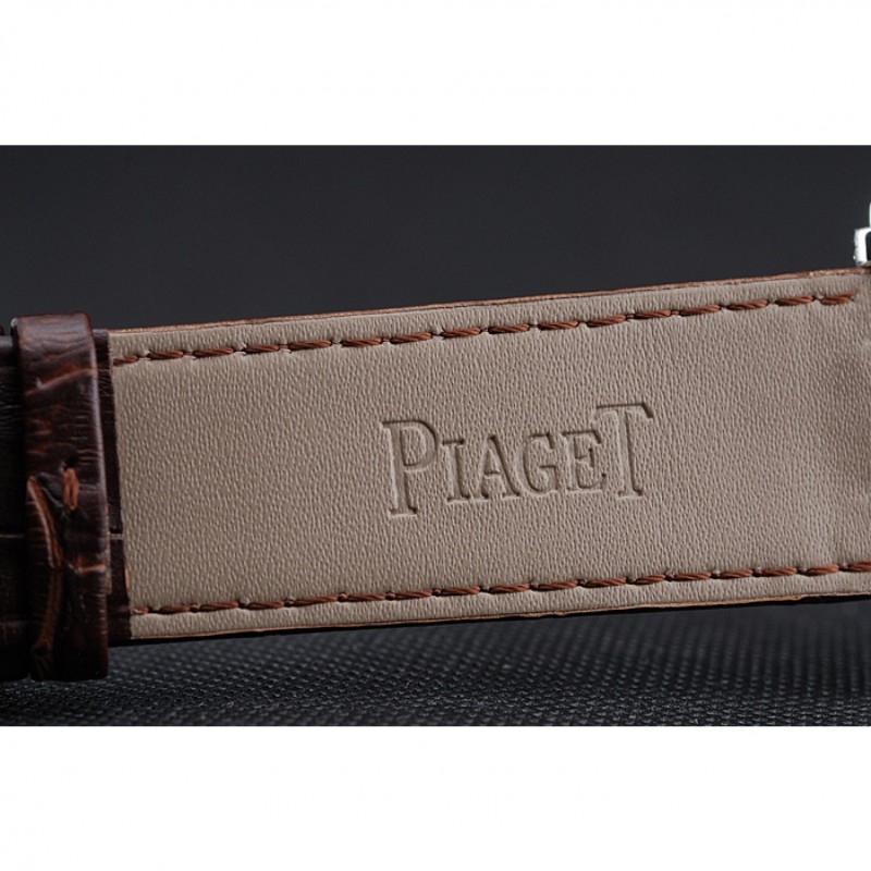 Bracelet:Piaget chaleur bracelet en cuir de crocodile brun relief avec Piaget logo gravé fermoir crochet-boucle en acier inoxydable poli