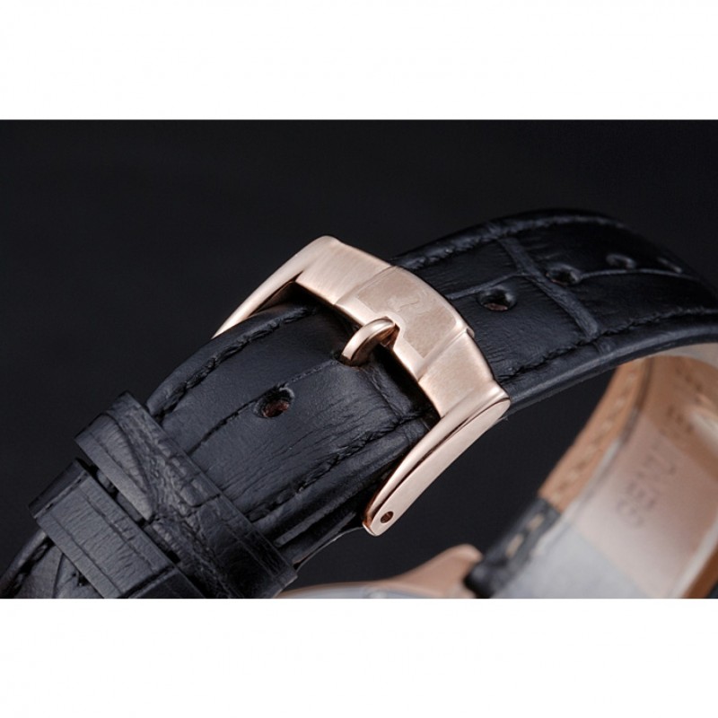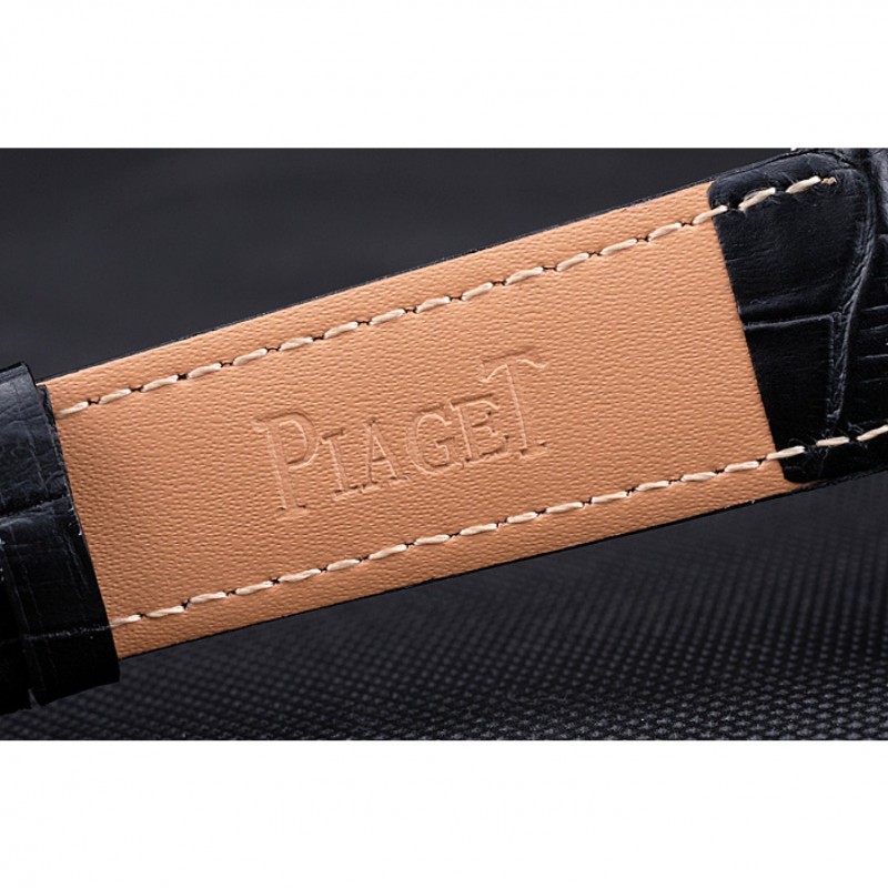 Bracelet:chaleur Piaget gaufré bracelet en cuir crocodile noir avec logo 18k inscrit rose plaqué or fermoir crochet-boucle