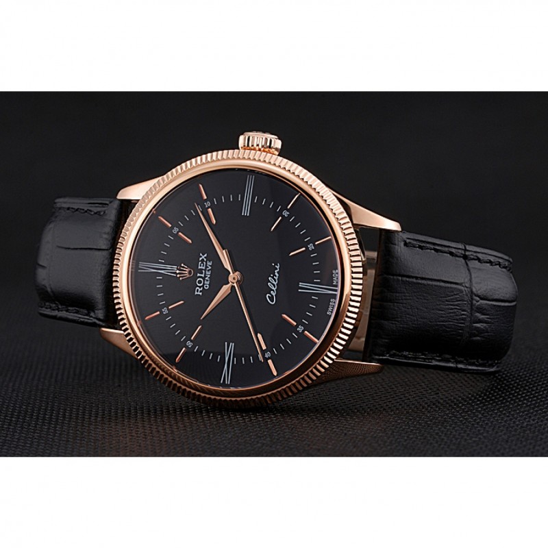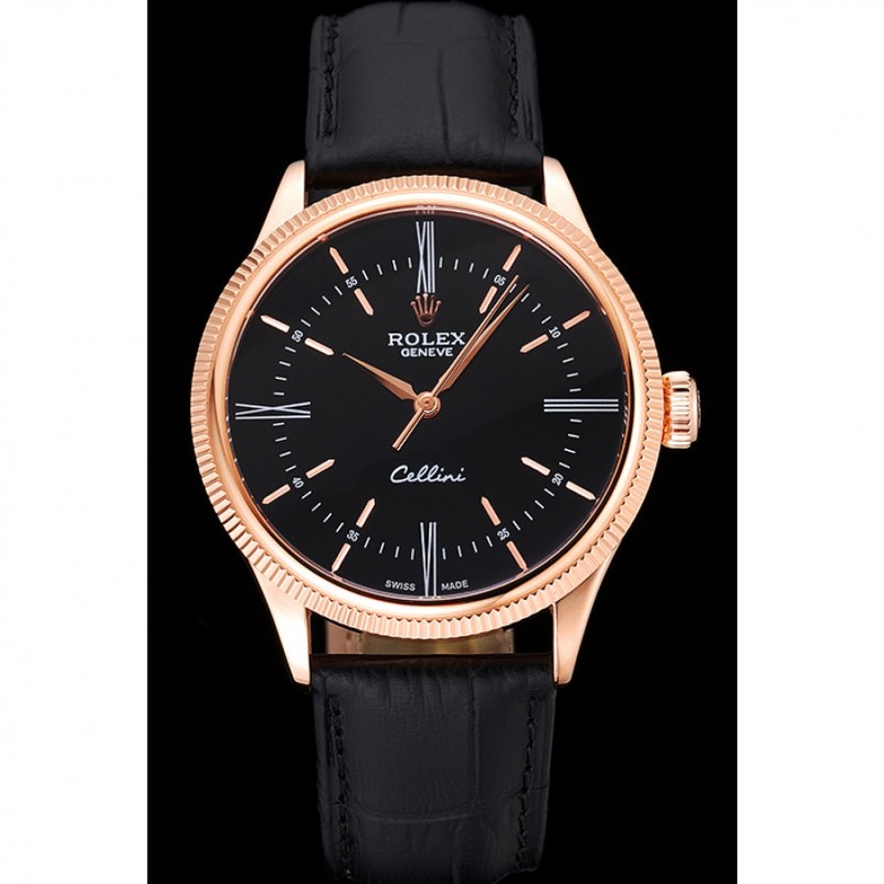 Bracelet:Rolex et logo chaleur bracelet en cuir croco noir avec logo gravé plaqué or rose fermoir crochet boucle