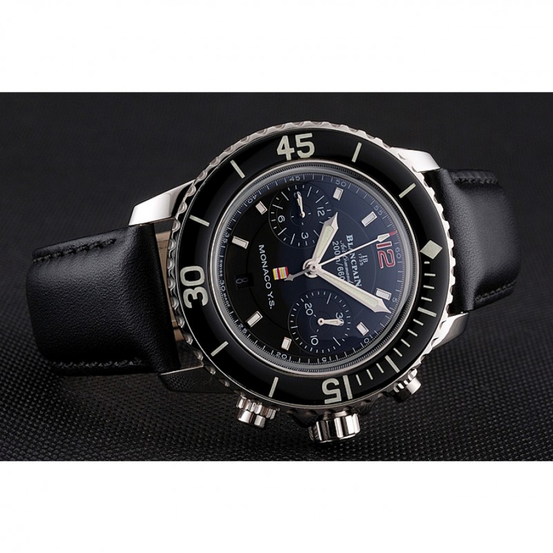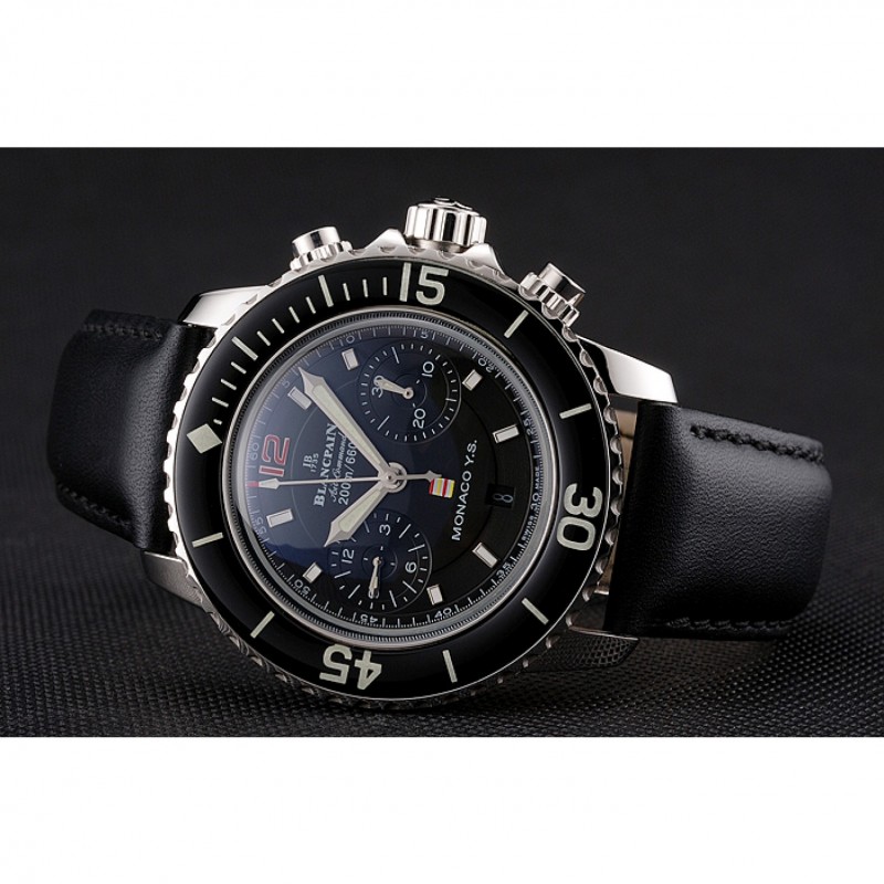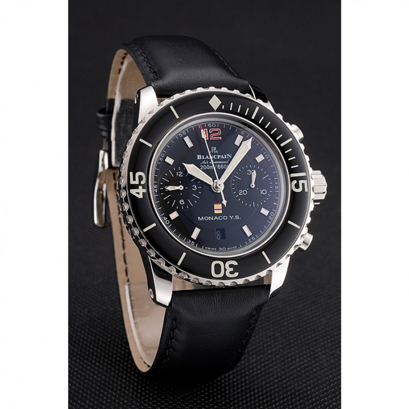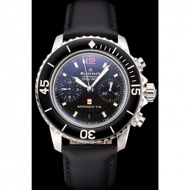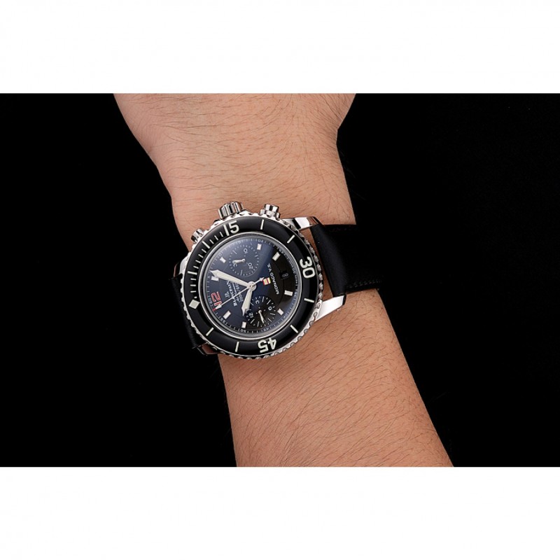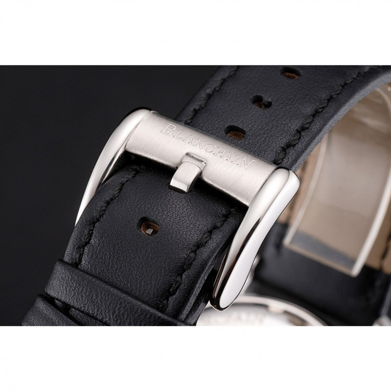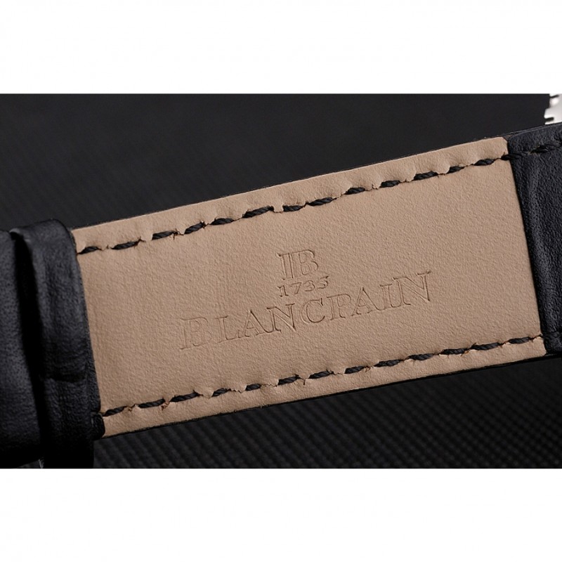 Bracelet:Logo et Blancpain chaleur en relief bracelet en cuir noir avec Blancpain gravé fermoir crochet-boucle en acier inoxydable poli