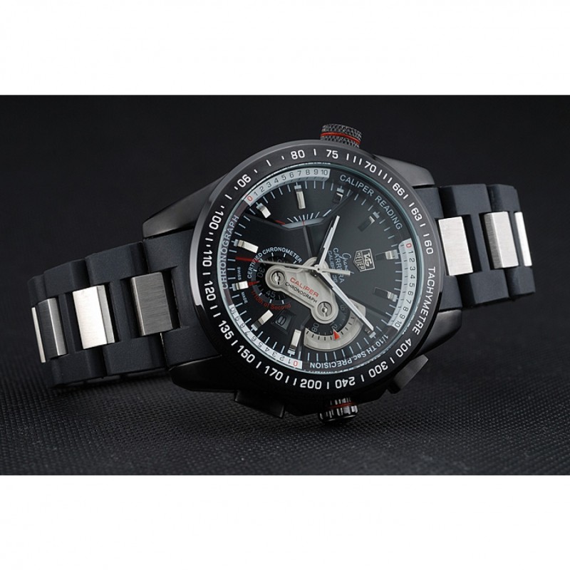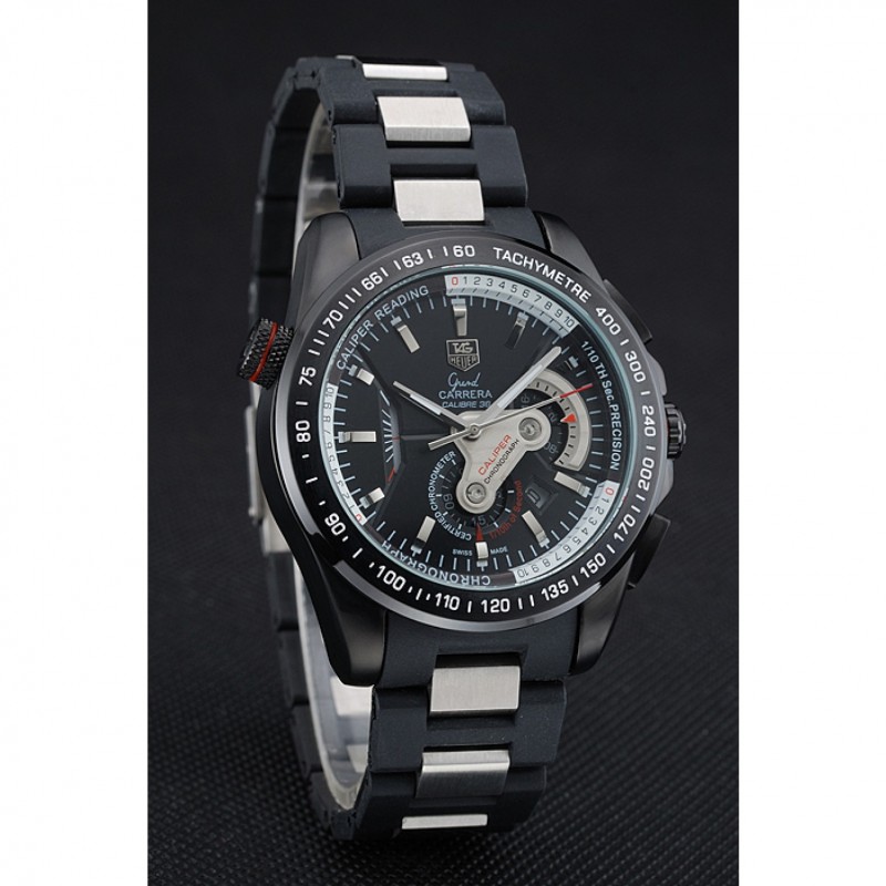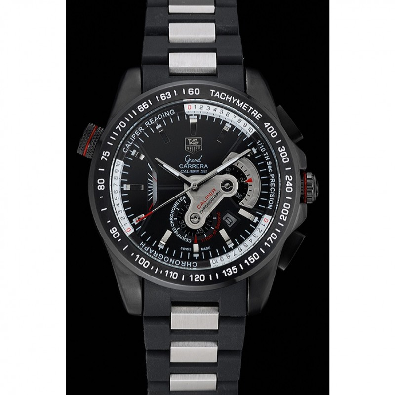 lunette:lunette cutwork acier inoxydable Ion-plaqué avec tachymètre noir brillant