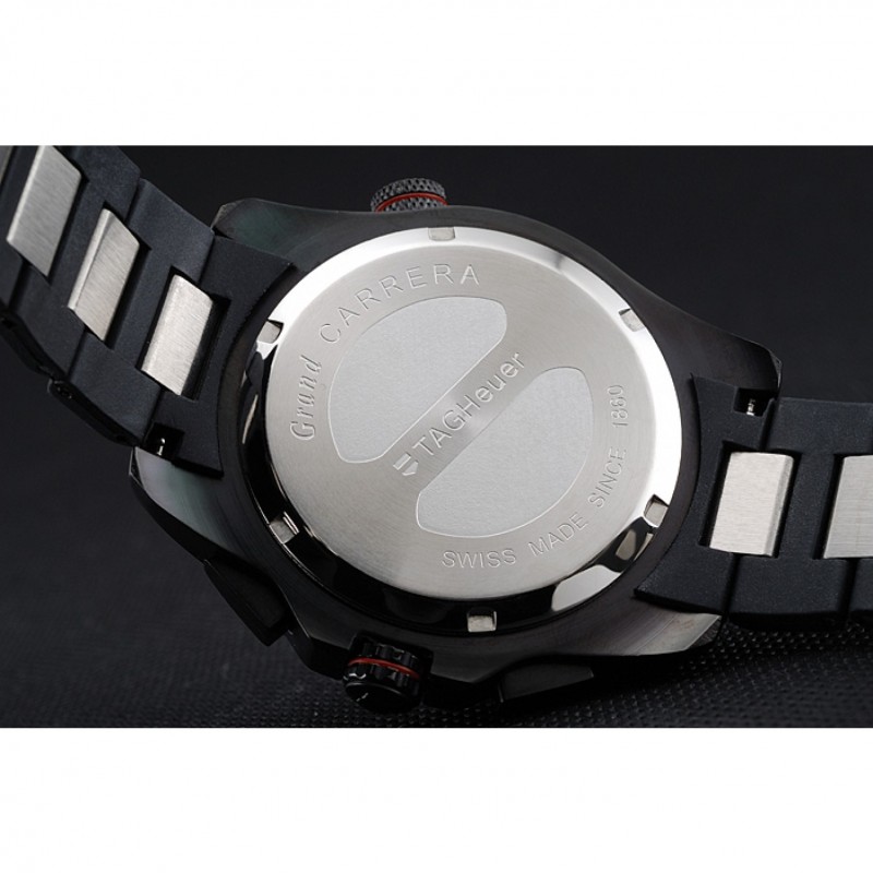 Couronne:acier inoxydable Ion plaqué couronne cutwork avec Tag Heuer logo ainsi que deux couronnes supplémentaires de chaque côté et l’autre sur le coin supérieur opposé