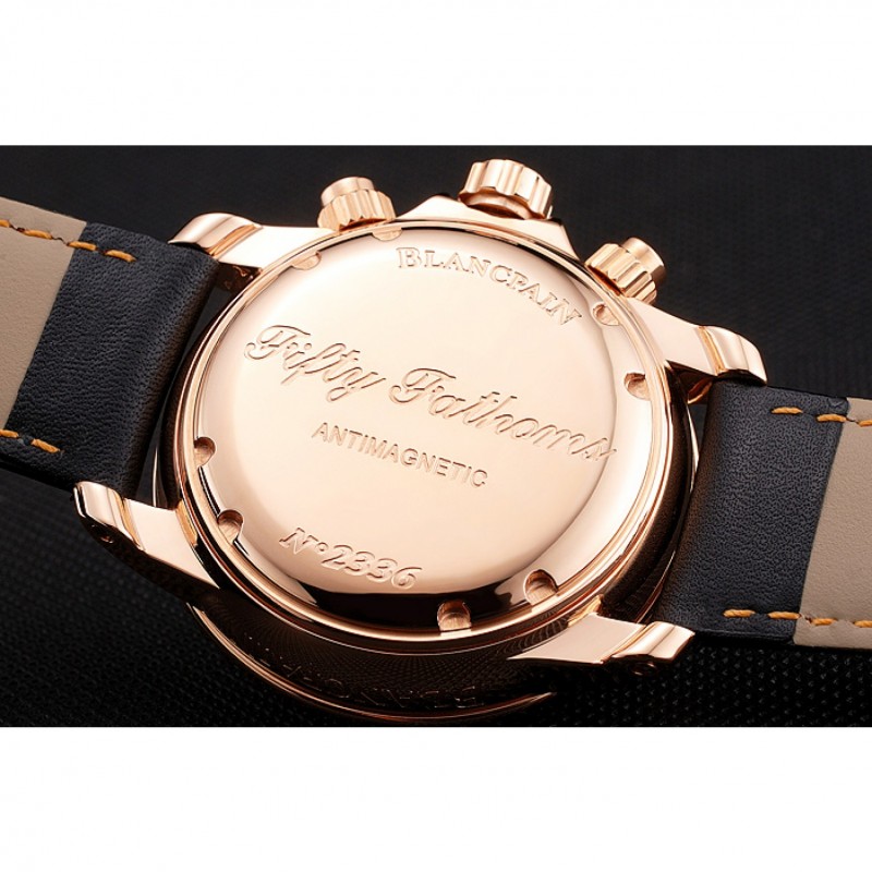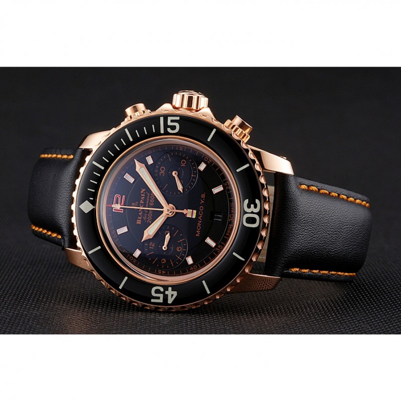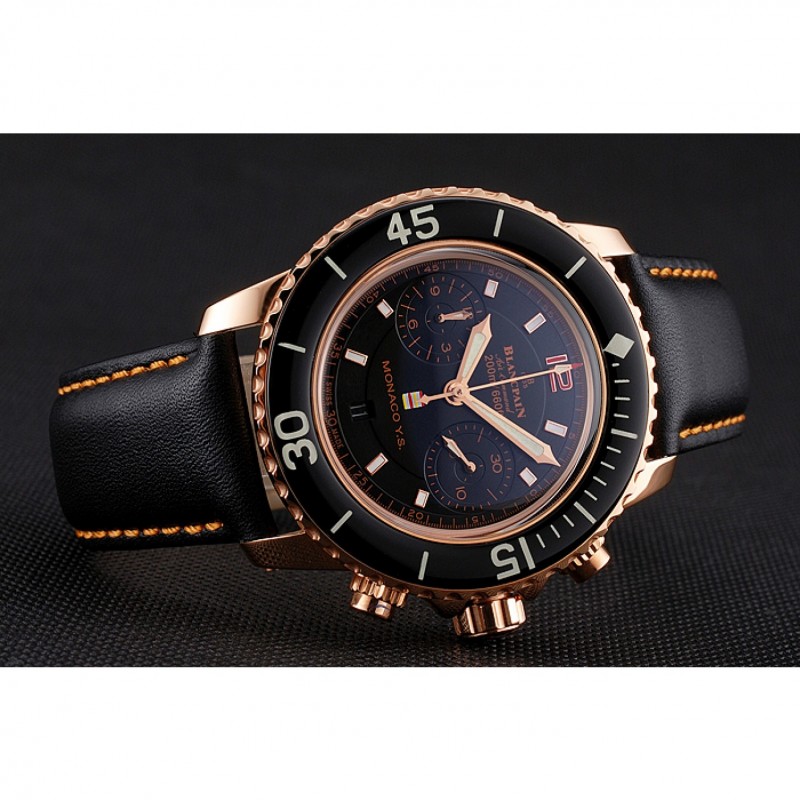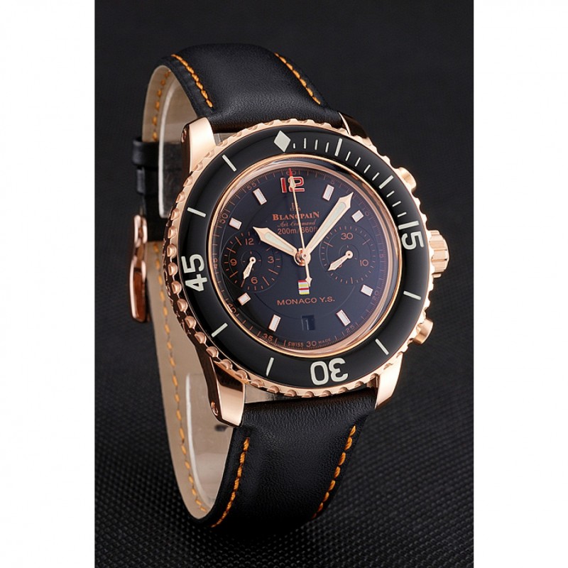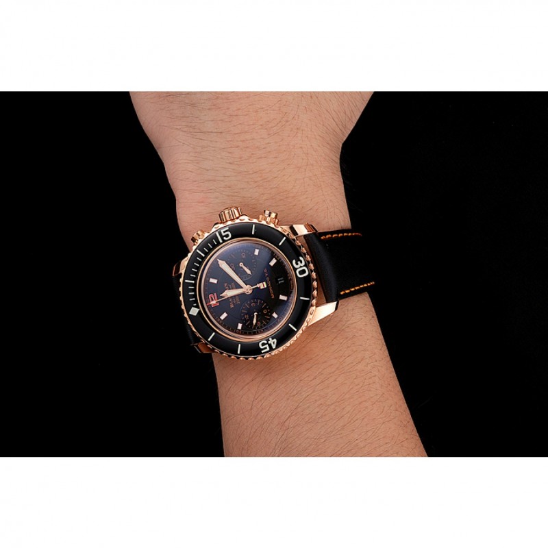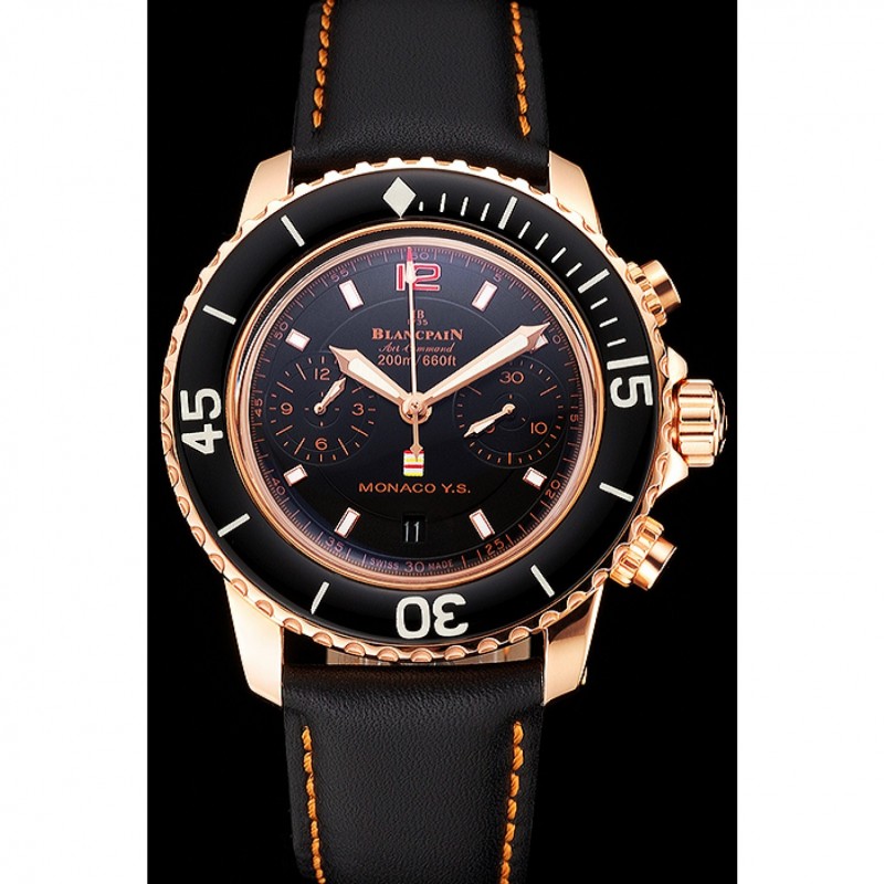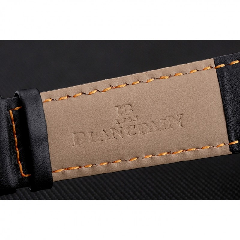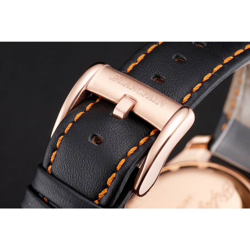 Bracelet:Logo et Blancpain chaleur bracelet en cuir noir gaufré avec des coutures de fil orange et Blancpain gravé or rose 18 -Gold fermoir crochet boucle plaquée