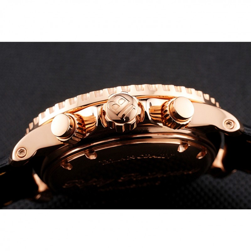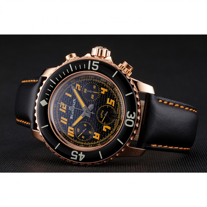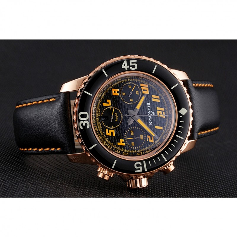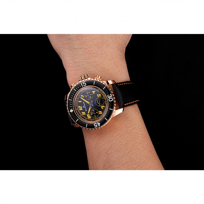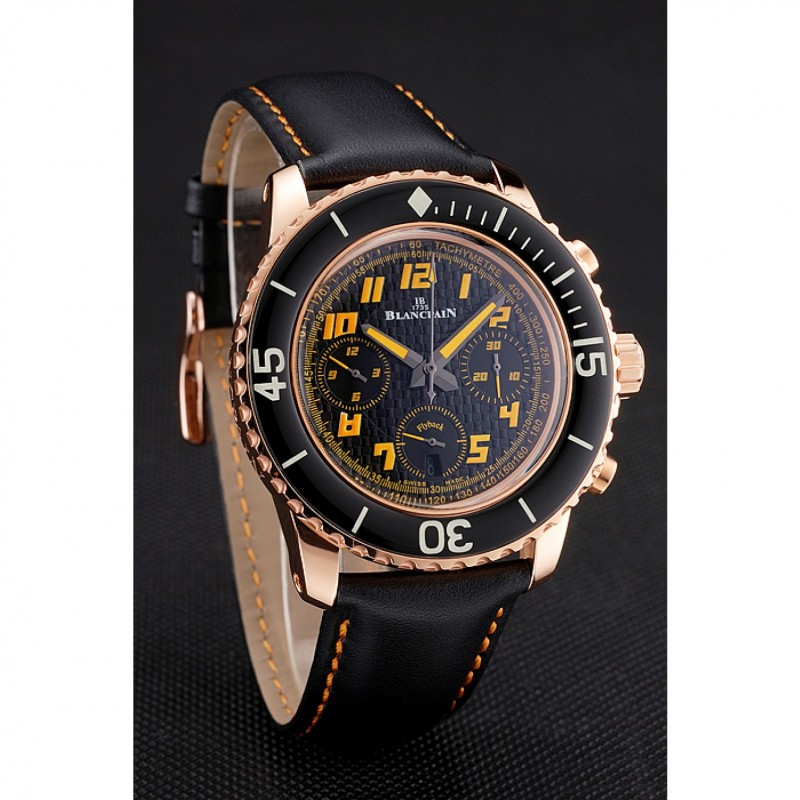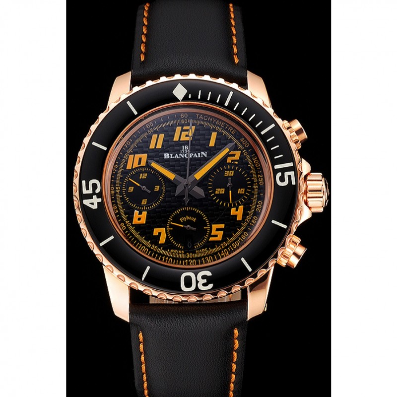 Bracelet:Logo et Blancpain chaleur bracelet en cuir noir gaufré avec des coutures de fil orange et Blancpain gravé or rose 18 -Gold fermoir crochet boucle plaquée