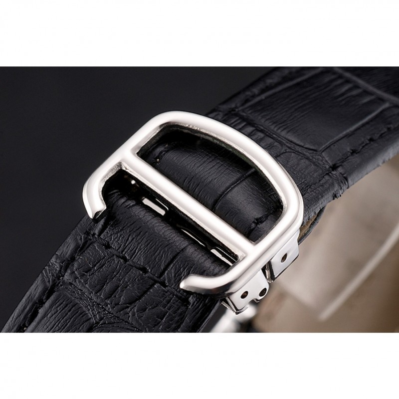 Bracelet:Cartier et bracelet en cuir crocodile noir gaufré chaleur de code de produit avec un acier inoxydable de pliage en boucle brossé