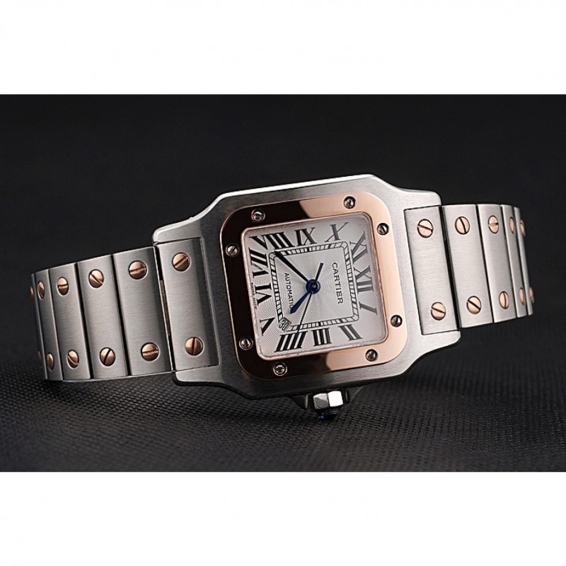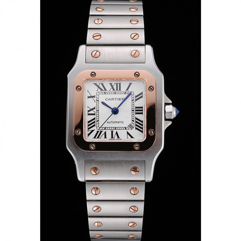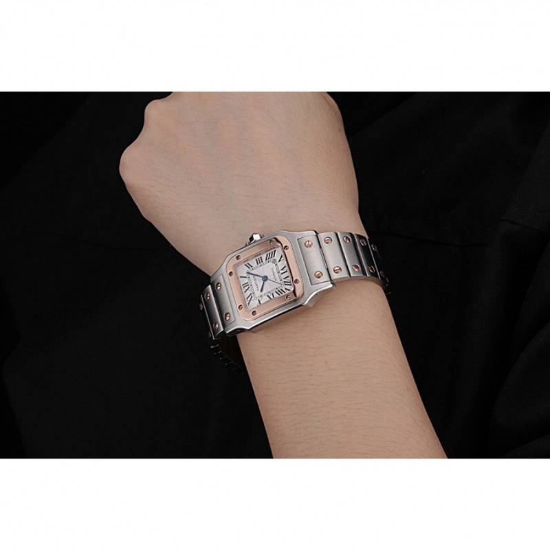 Suisse Cartier Santos De Cartier Galbee or rose et bracelet en acier Boîtier en acier Petit 622645
