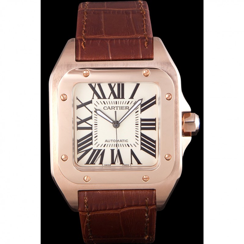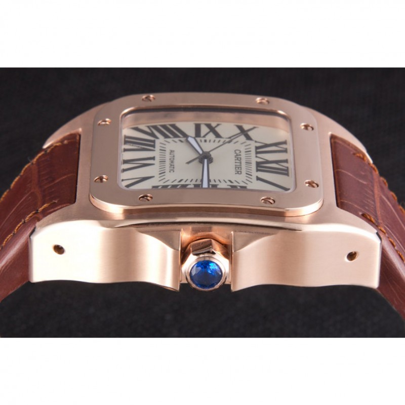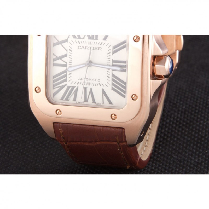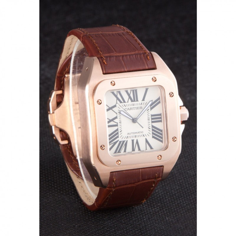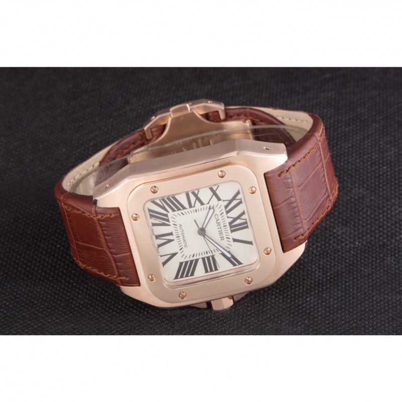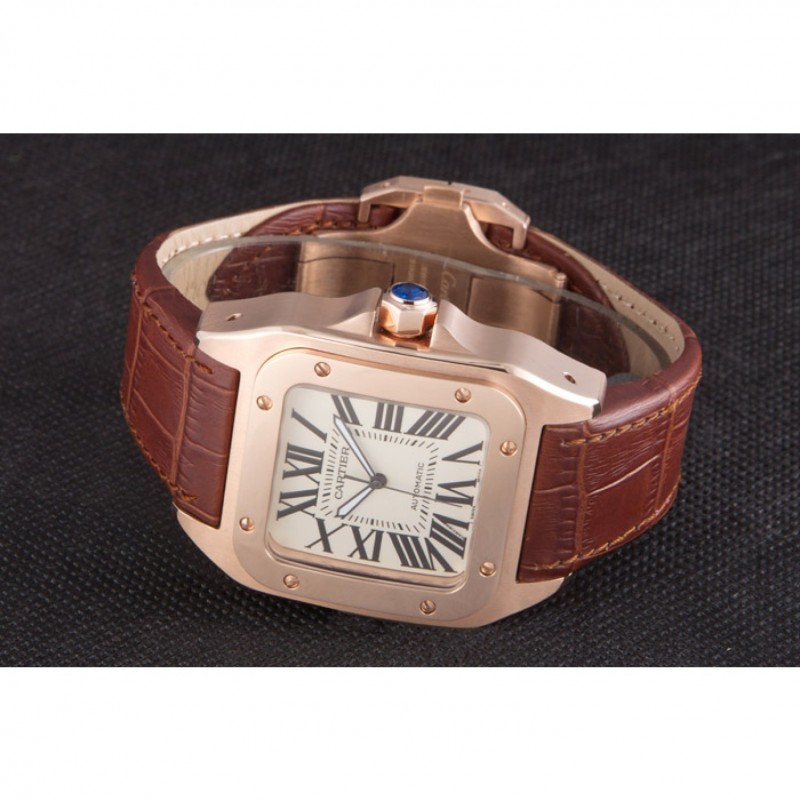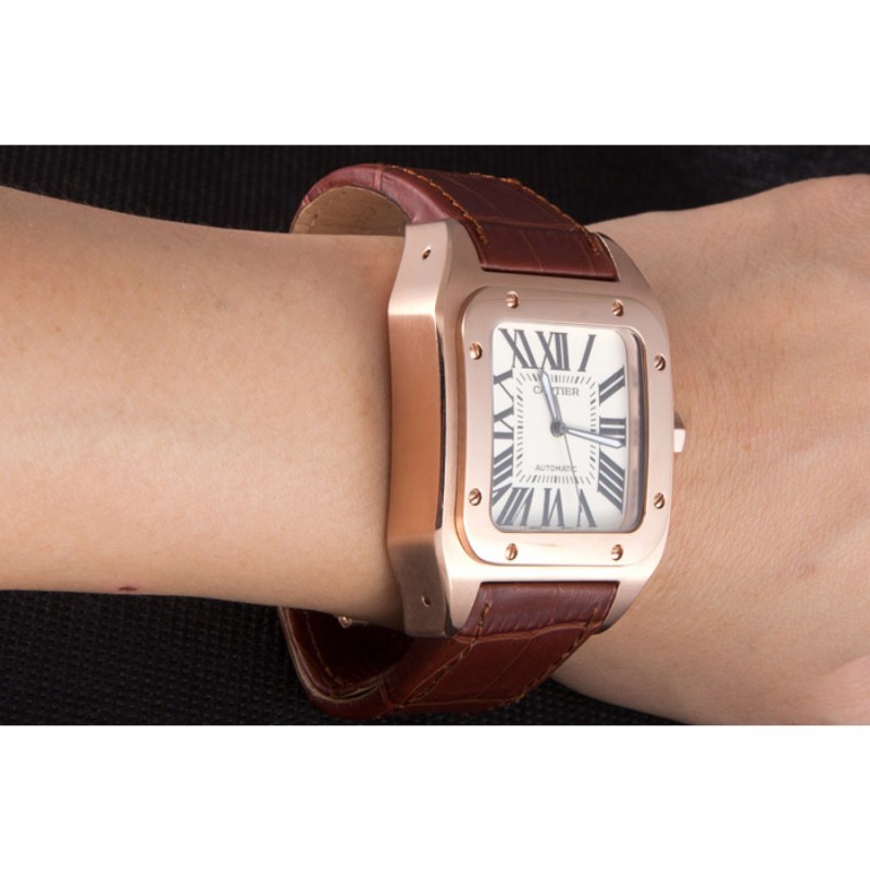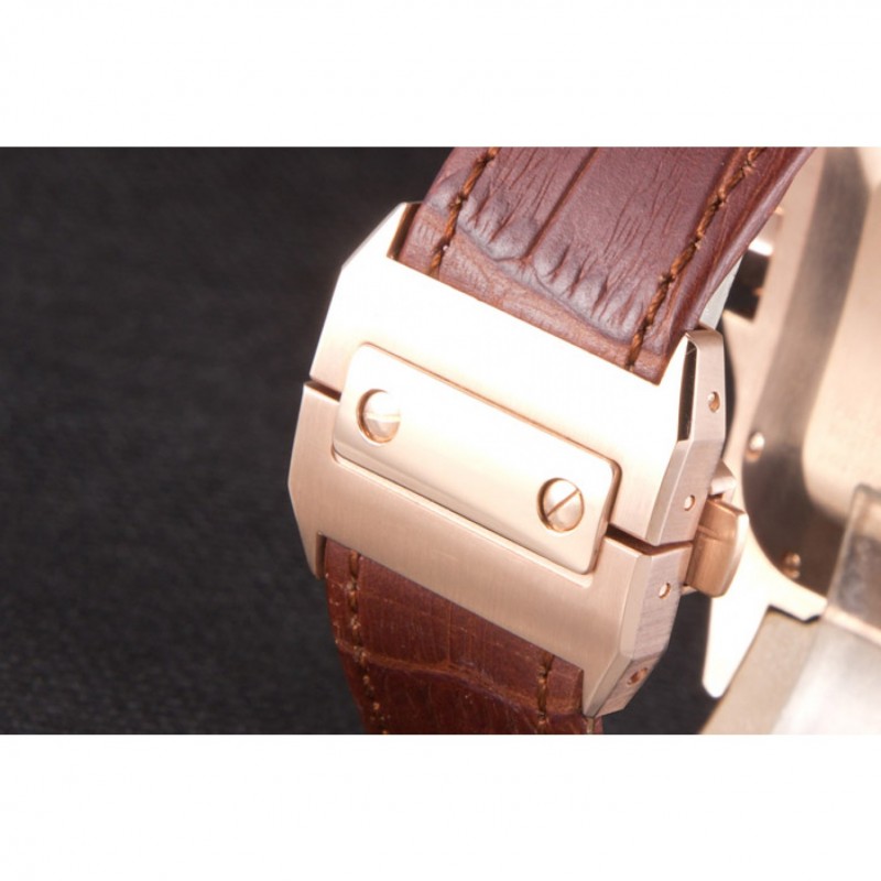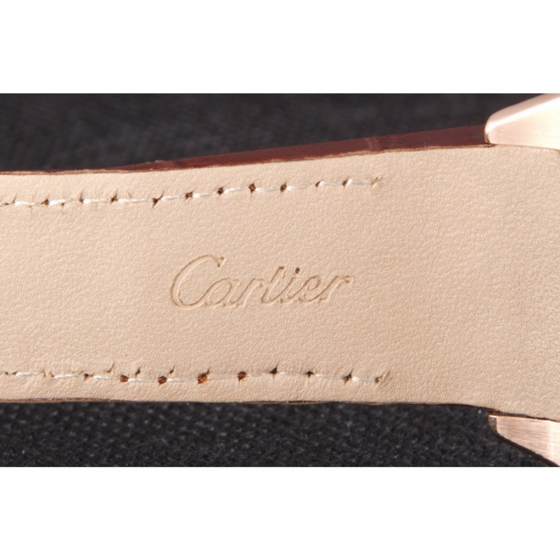 Bracelet:Cartier chaleur en relief crocodile brun bracelet en cuir avec 18k rose plaqué or poussoir fermoir à libération