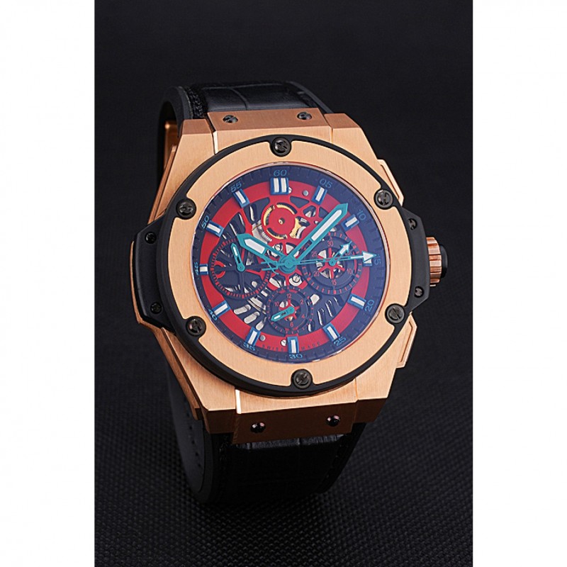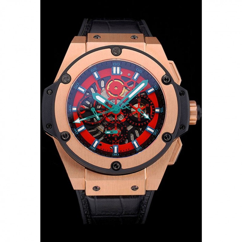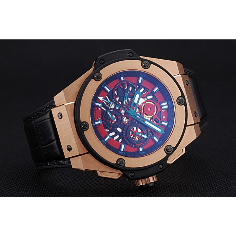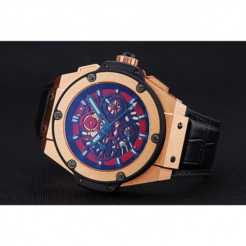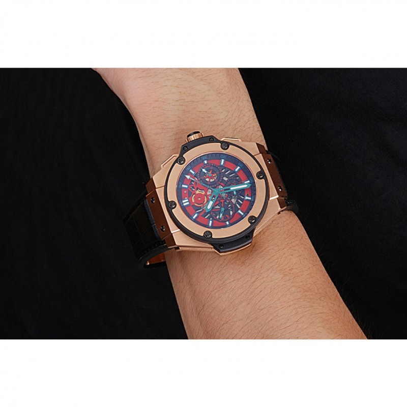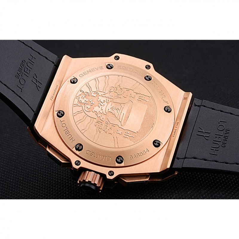 Retour:18k Rose- or plaqué vissé en arrière avec la mécanique centrale reavealing et inscription Hublot