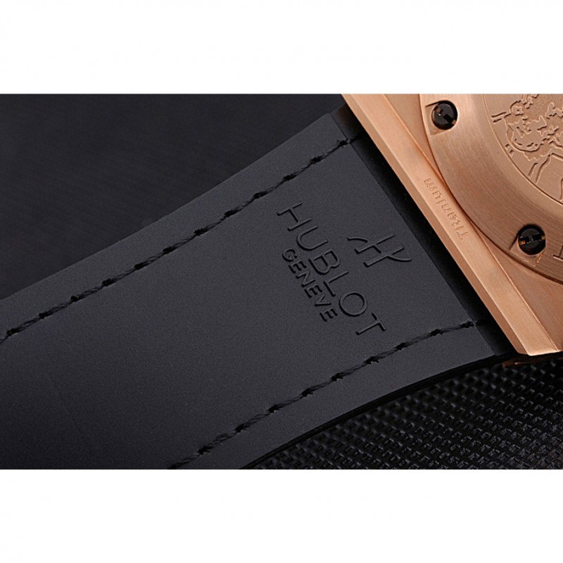 Bracelet:Hublot Geneve et logo chaleur bracelet en cuir de crocodile noir en relief avec Hublot Geneve gravé 18k or rose plaqué fermoir à bouton-presse