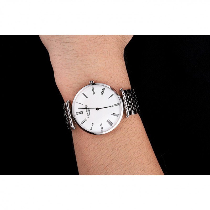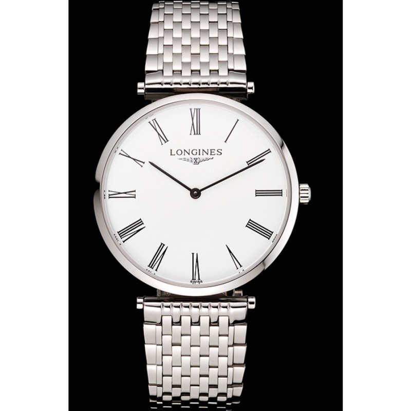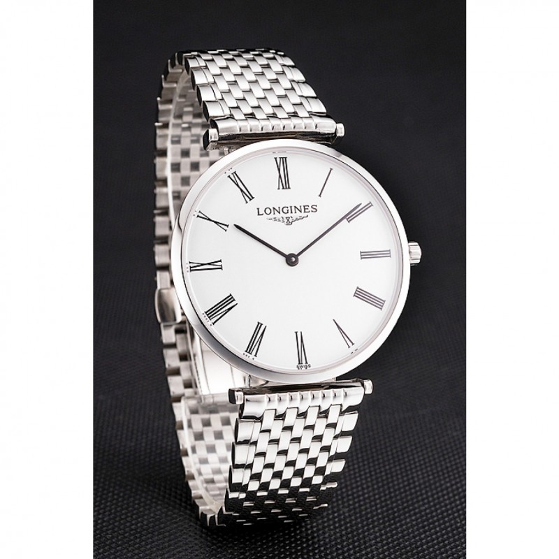bracelet:bracelet poli maillons en acier inoxydable avec Longines et logo gravé push-presse fermoir caché