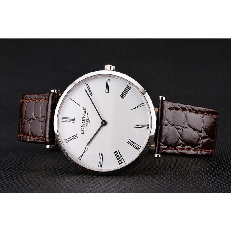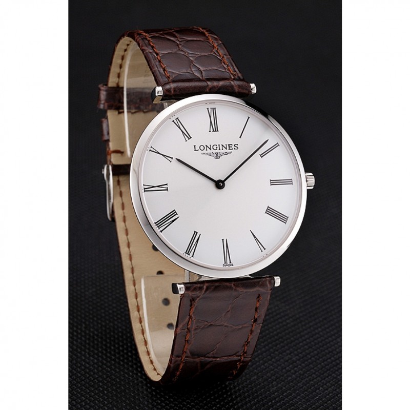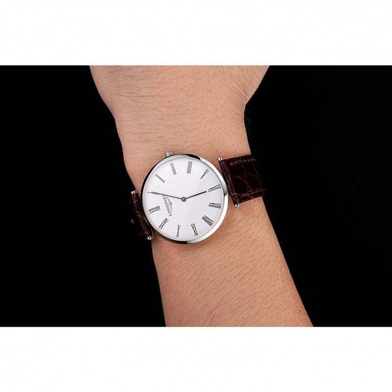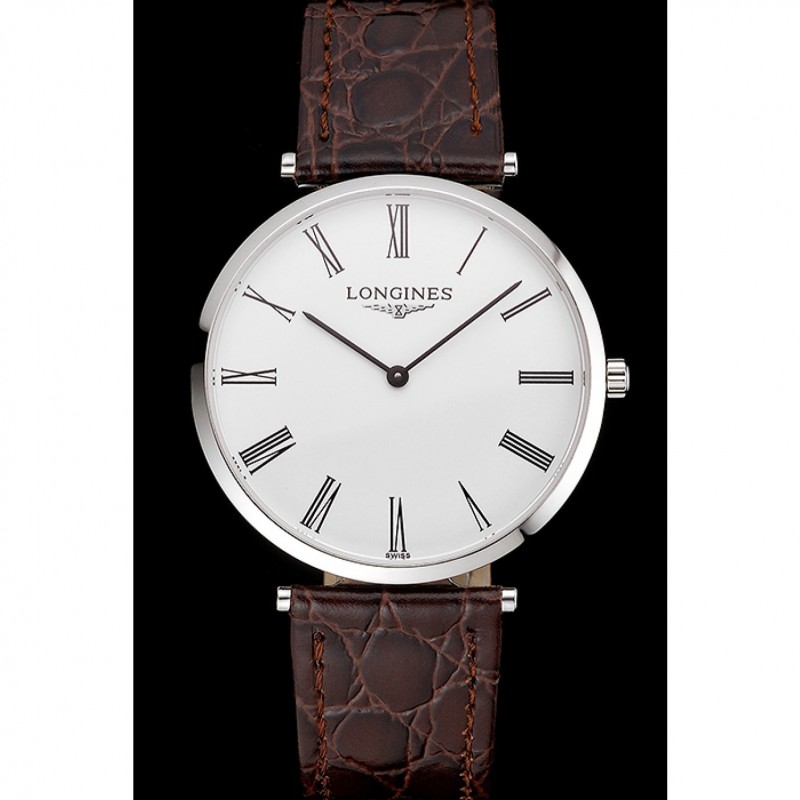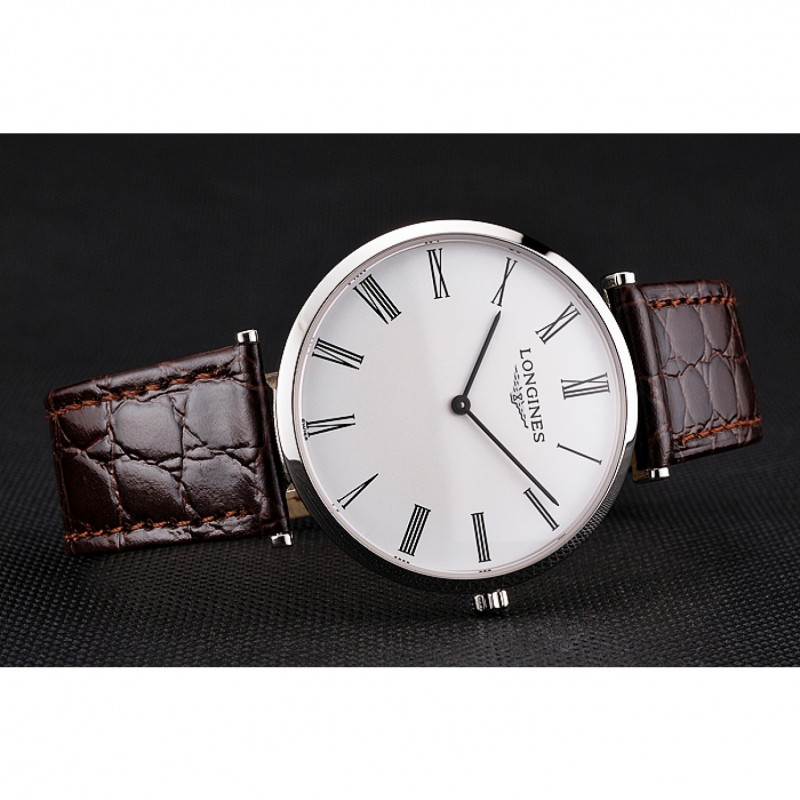 Bracelet:bracelet en cuir brun crocodile avec logo Longines sculpté brossé fermoir crochet boucle en acier inoxydable