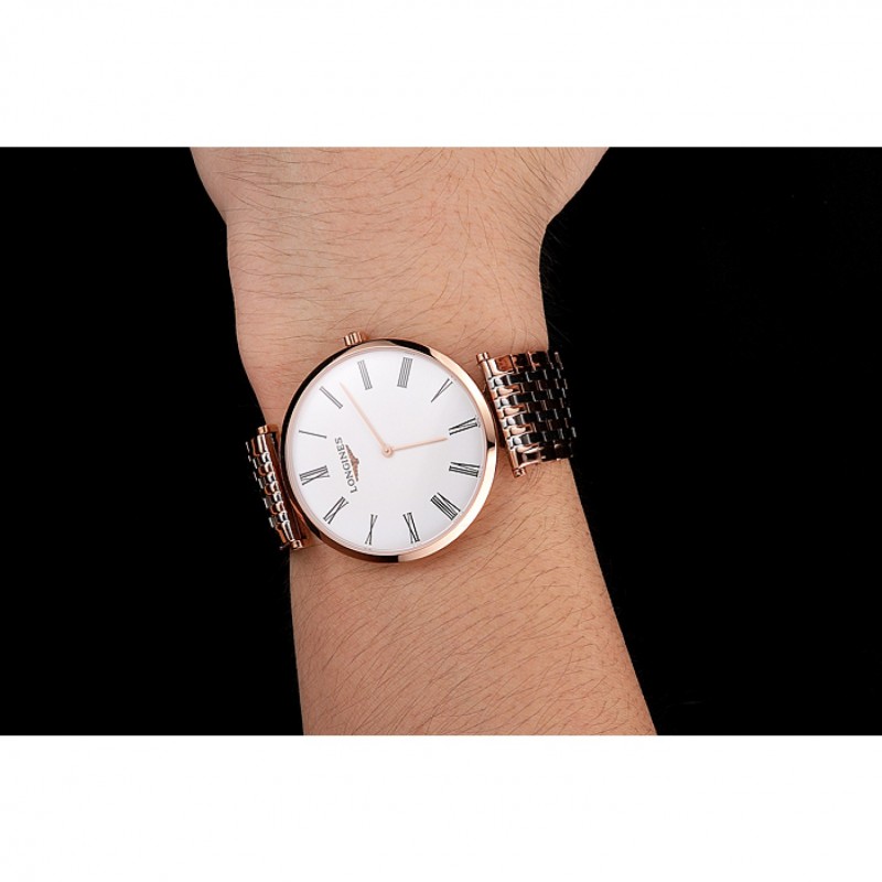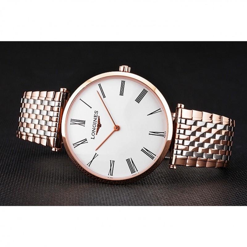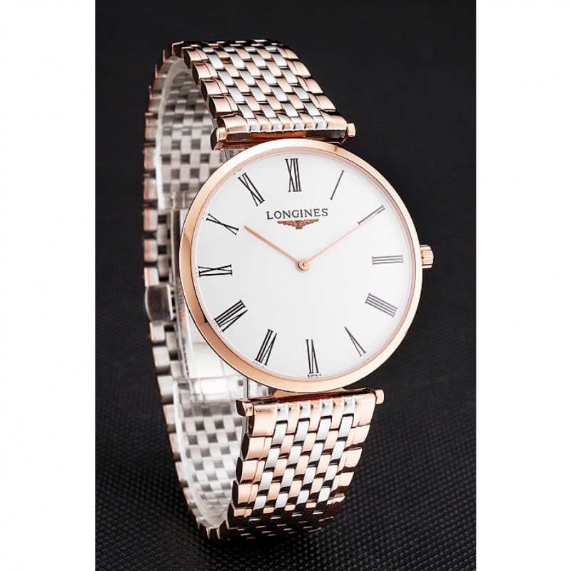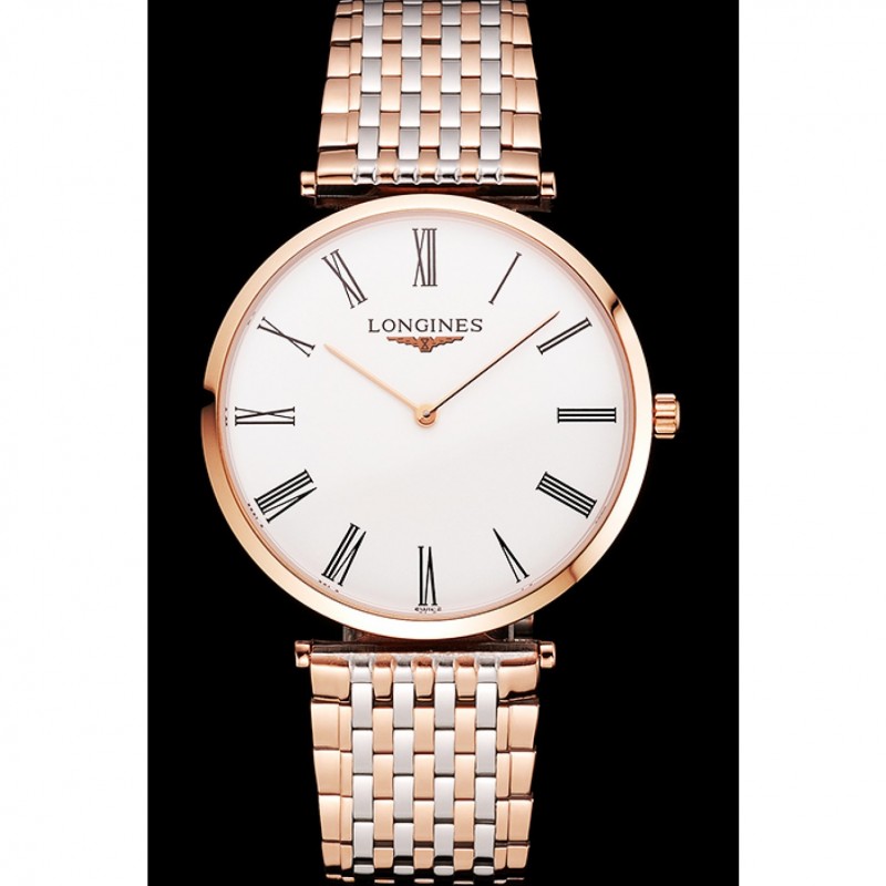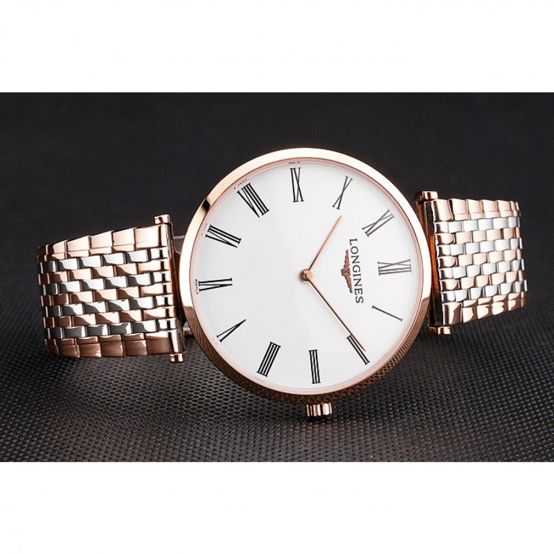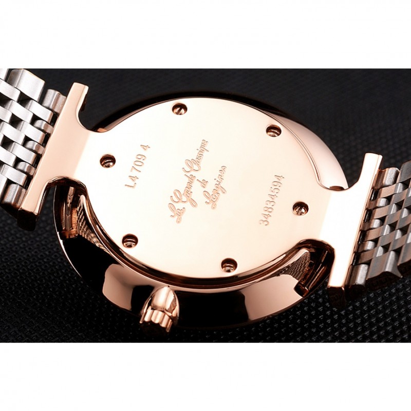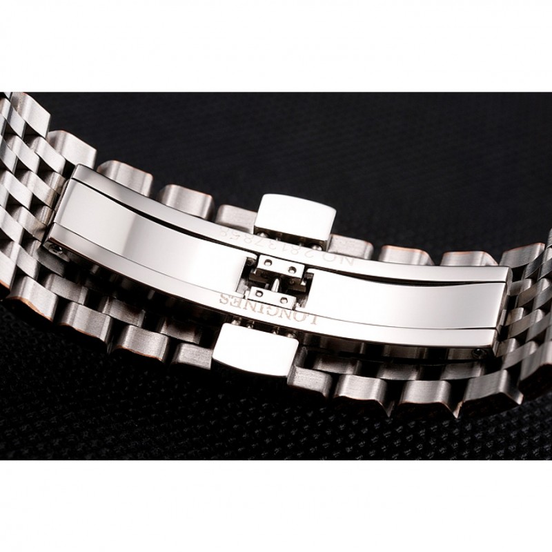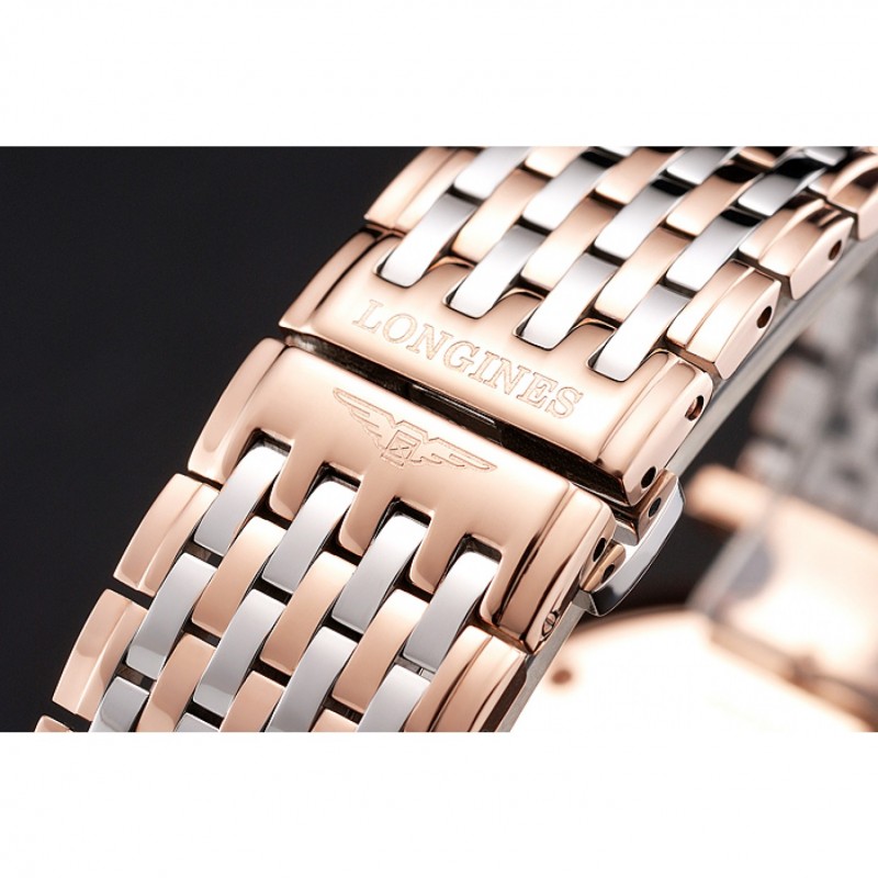 bracelet:18k or rose plaqué et bracelet à maillons en acier inoxydable poli avec Longines et logo gravé push-presse fermoir caché