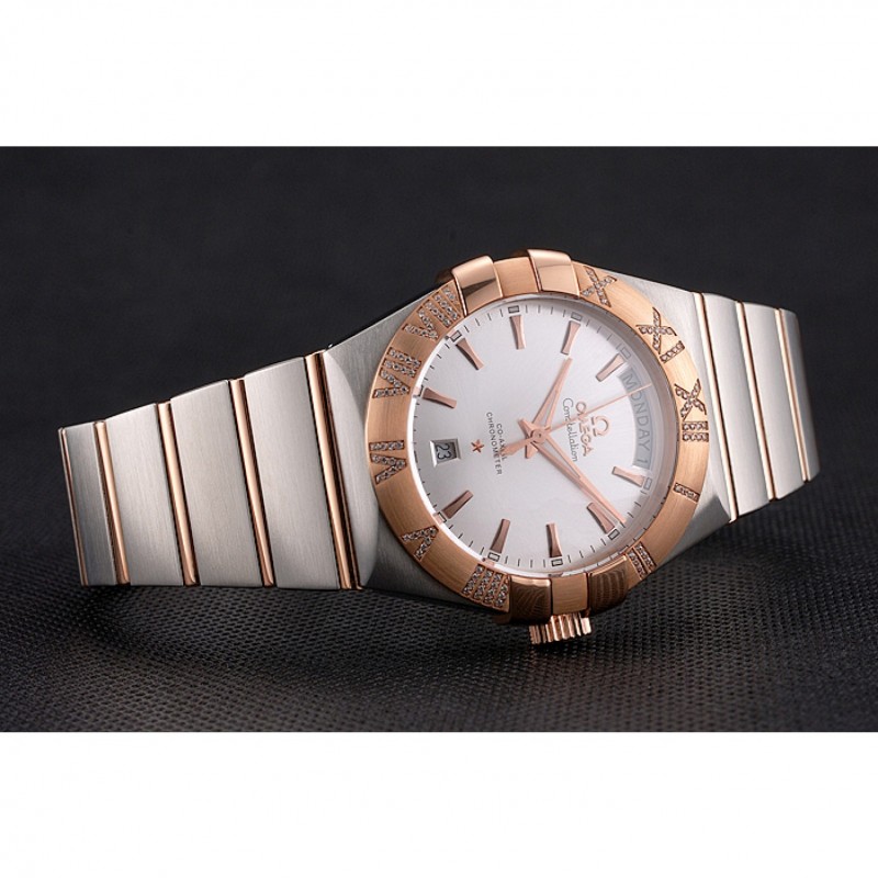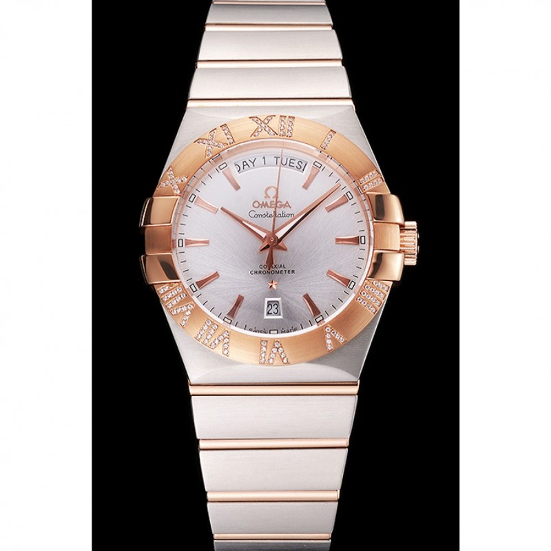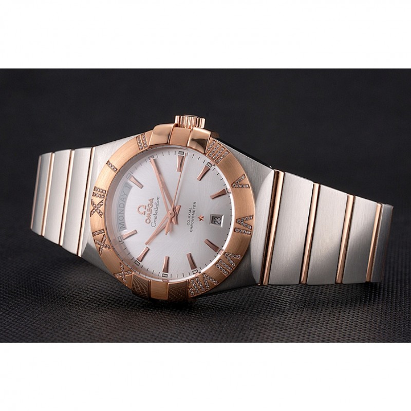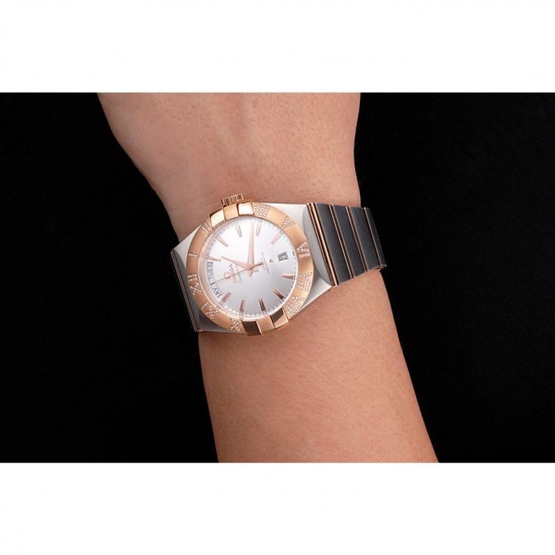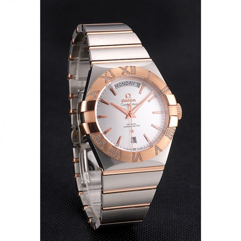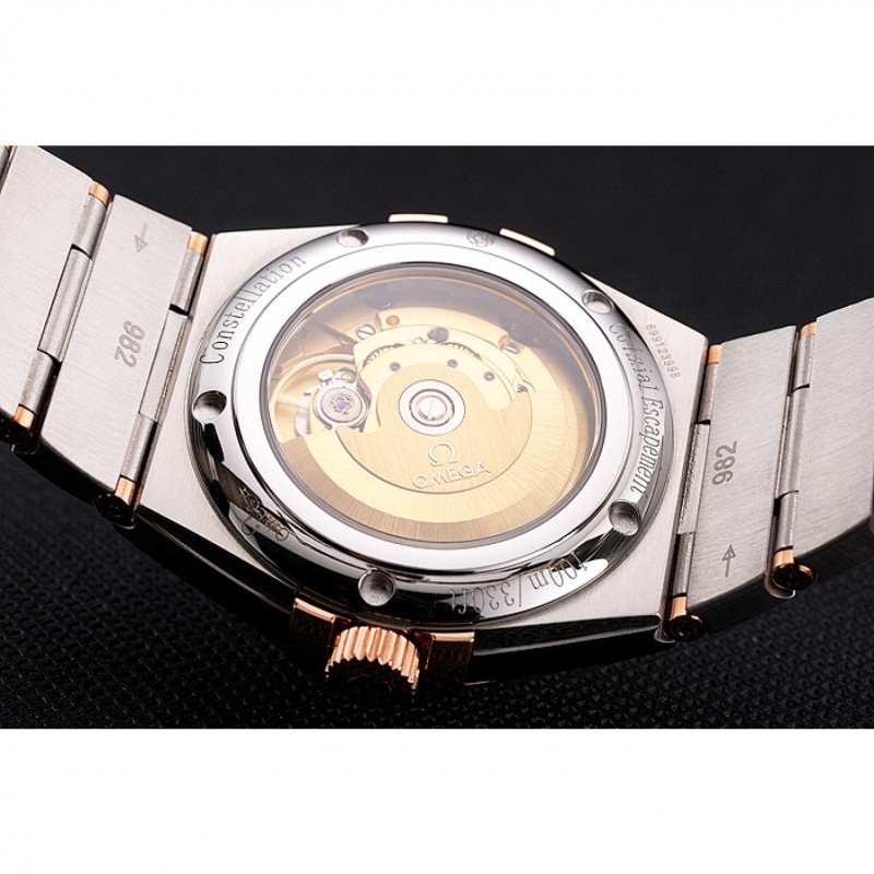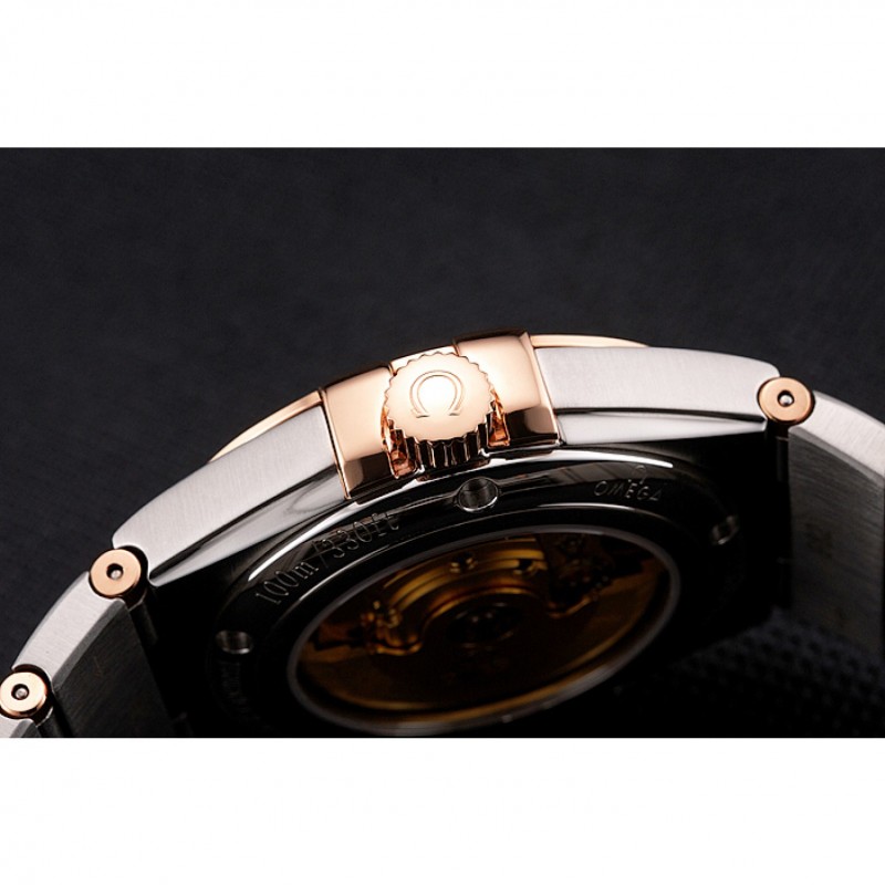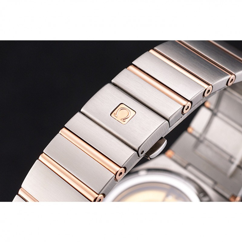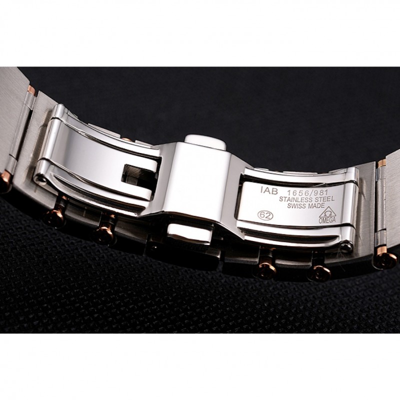 Bracelet:en acier inoxydable brossé et 18k or rose plaqué bracelet lien avec le logo Omega sculpté brossé fermoir sortie poussoir en acier inoxydable