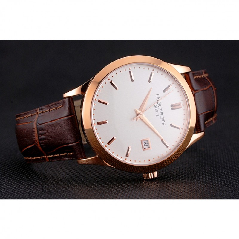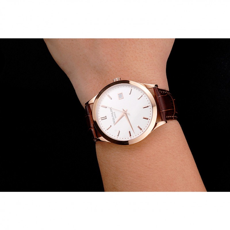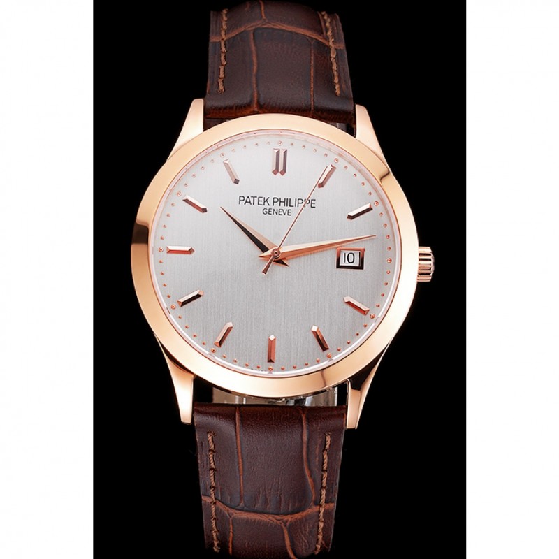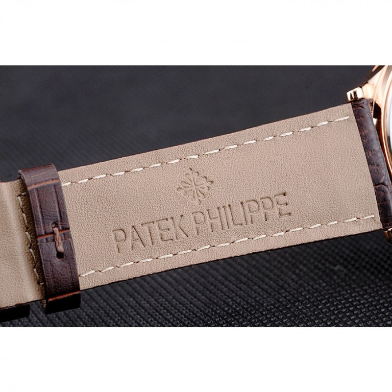 Bracelet:logo et Patek Philippe chaleur en relief sangle crocodile en cuir marron avec 18k rose-or plaqué fermoir crochet-boucle