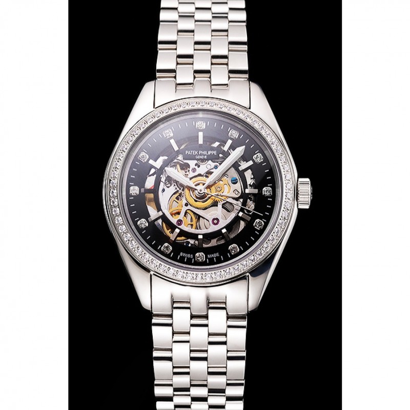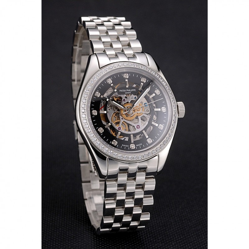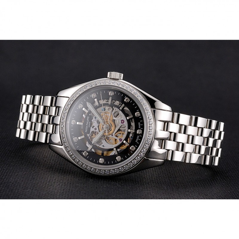 Retour:transparent mécanique révélant poli dos en acier inoxydable composant logiciel enfichable avec Patek Philippe et logo gravé