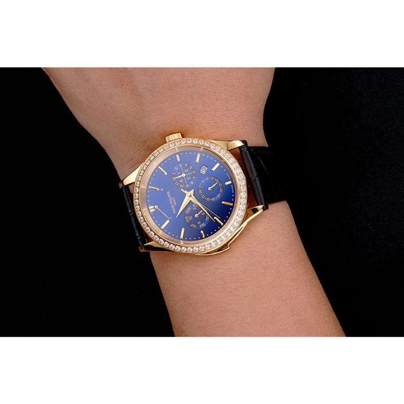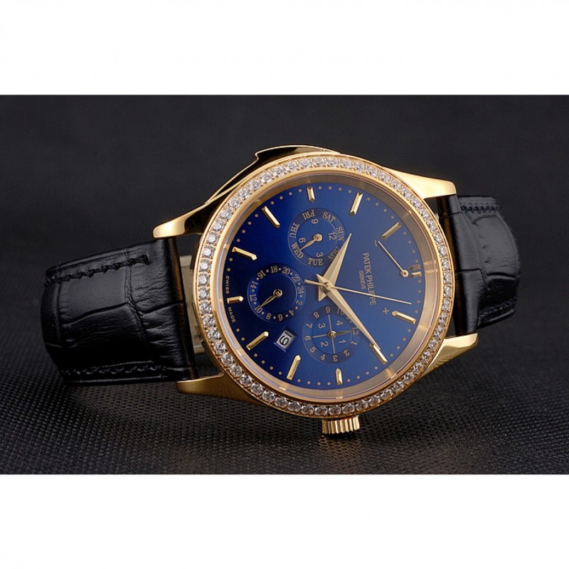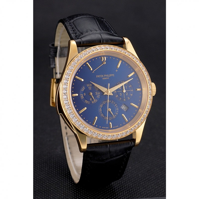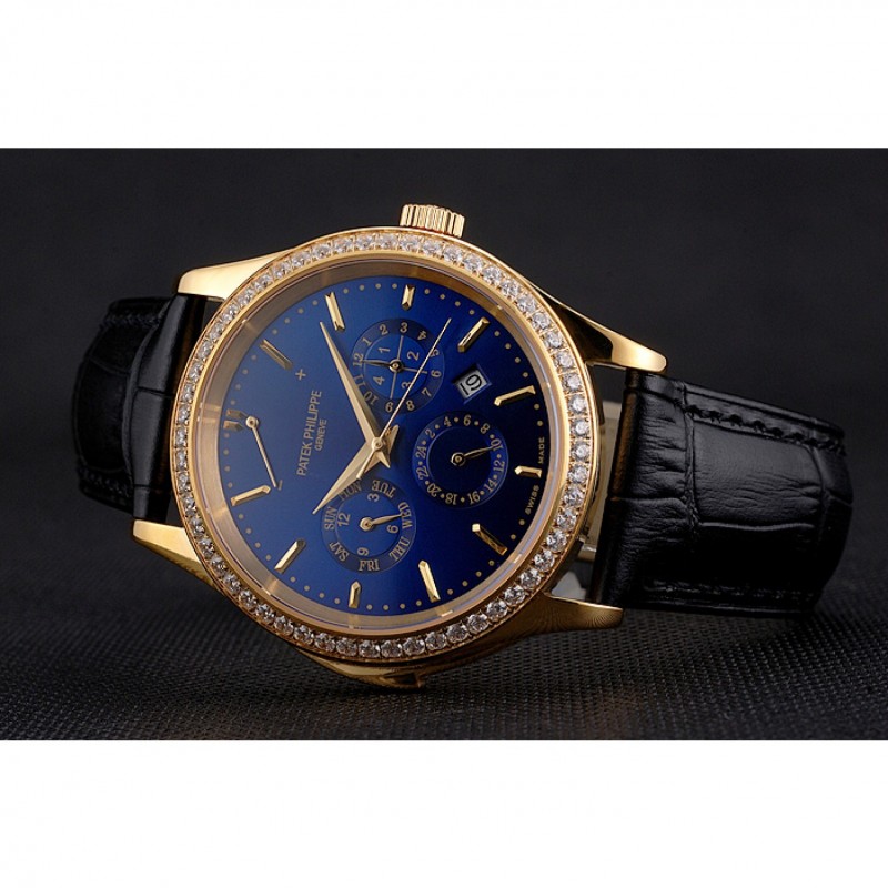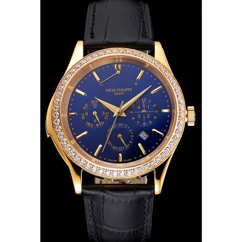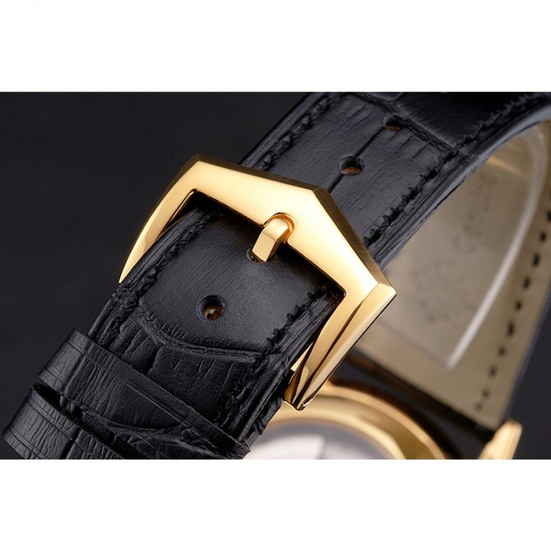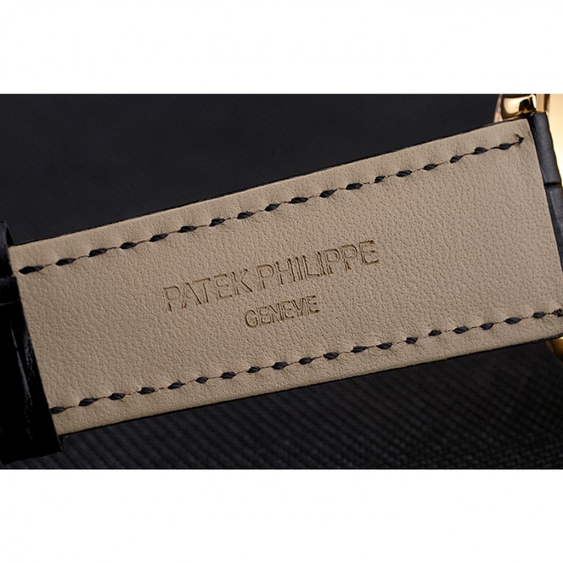 Bracelet:Patek Philippe Geneve chaleur bracelet en cuir crocodile noir en relief avec 18k plaqué or jaune fermoir crochet-boucle