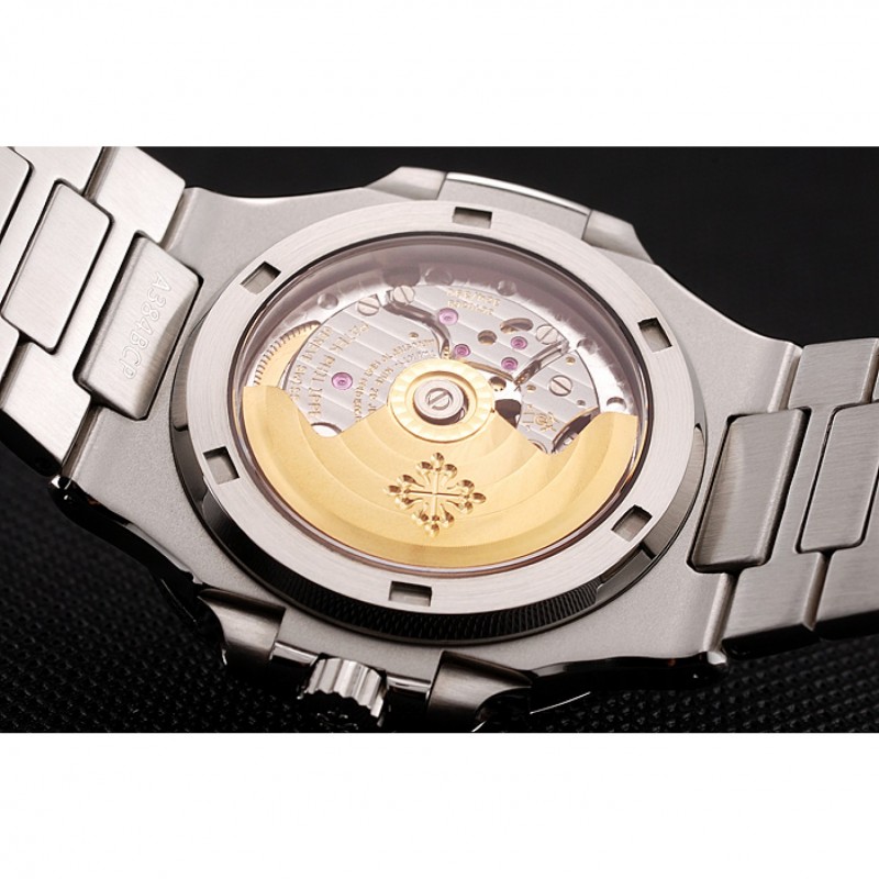 Retour:acier inoxydable poli composant logiciel enfichable à l’arrière avec logo Patek Philippe mécanique transpaent gravé fenêtre révélant
