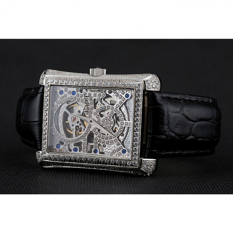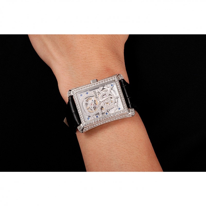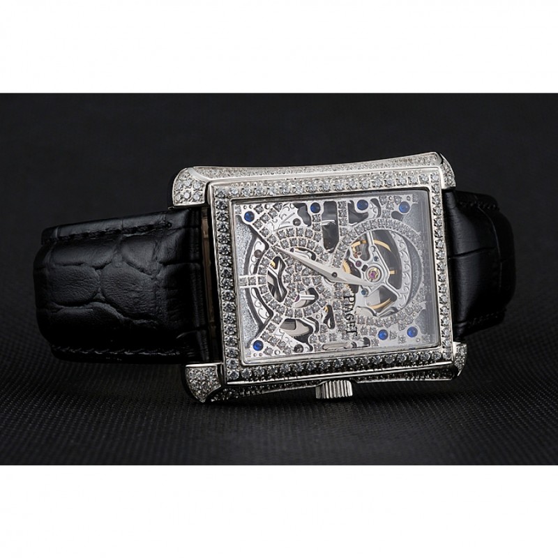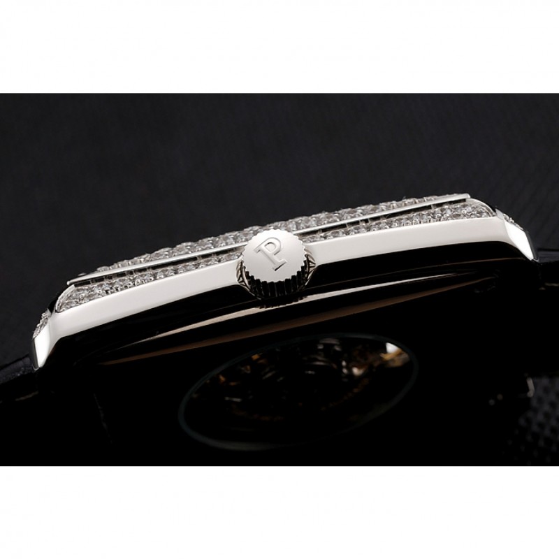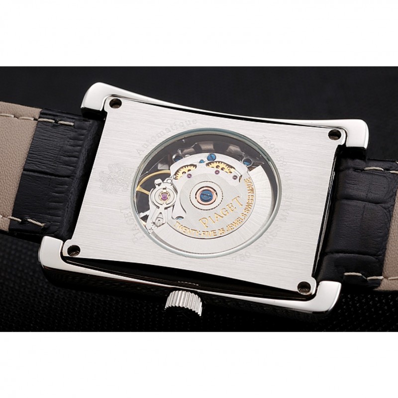 Retour:brossé en acier inoxydable vissé en arrière avec Piaget mécanique gravé centre révélant