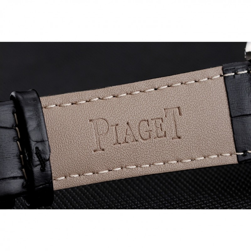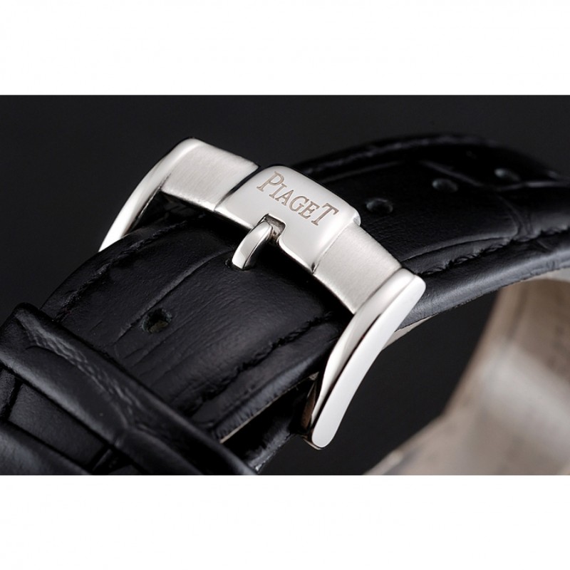 Bracelet:Piaget chaleur bracelet en cuir crocodile noir en relief avec Piaget gravé brossé fermoir crochet-boucle en acier inoxydable