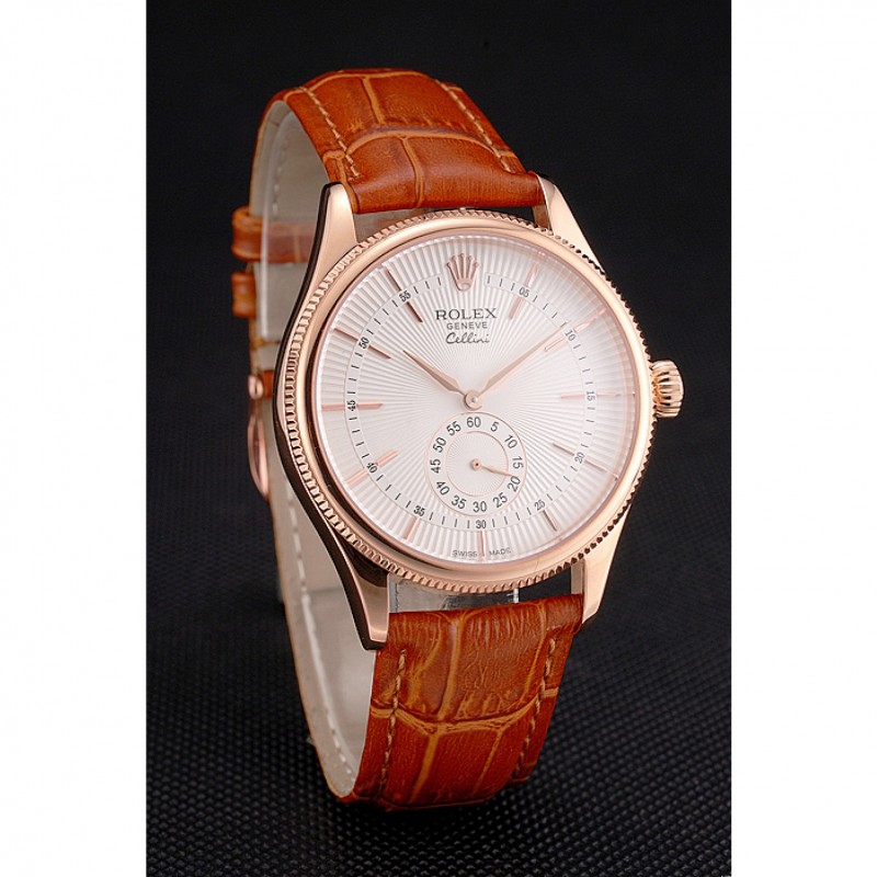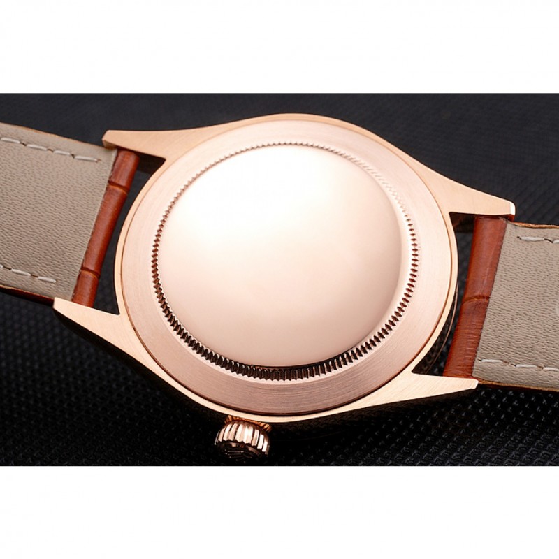 Bracelet:Rolex et logo chaleur gaufrée bracelet en cuir de crocodile marron clair avec logo Rolex sculpté 18k or rose plaqué fermoir crochet-boucle