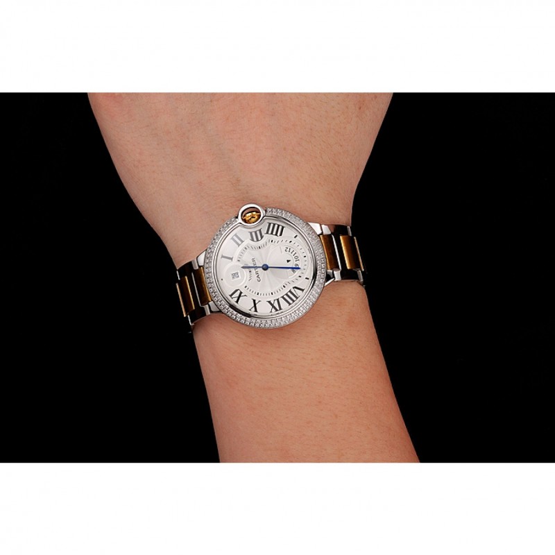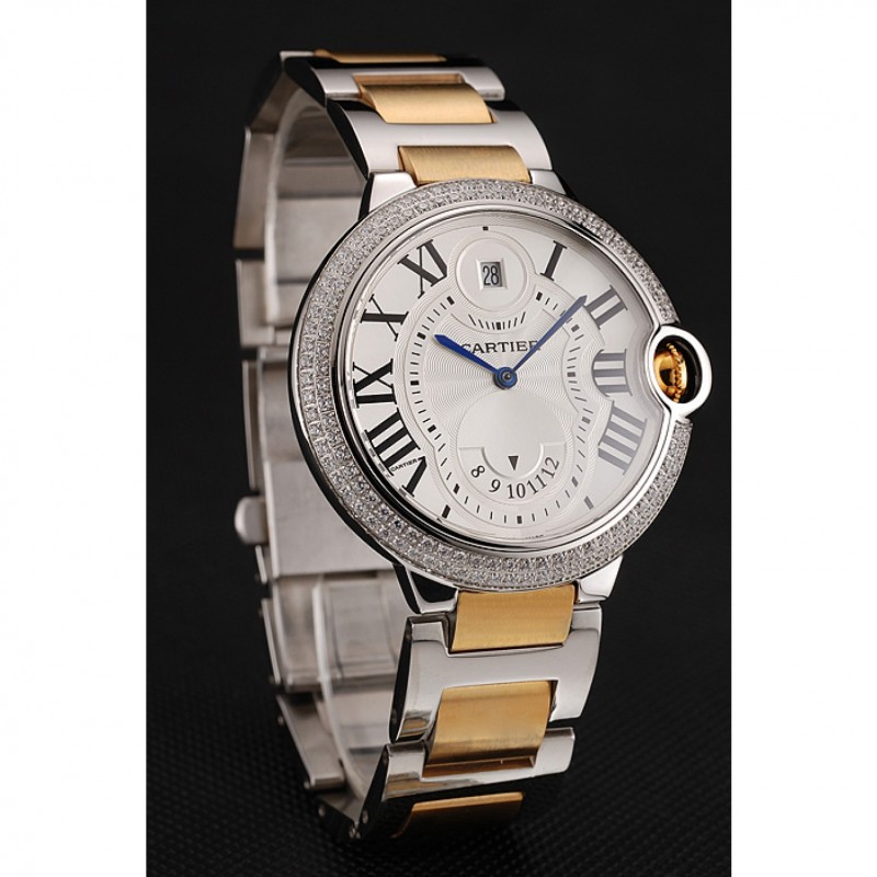 Retour:Cartier en acier inoxydable gravé brossé vissé en arrière avec la mécanique-révélateur centre