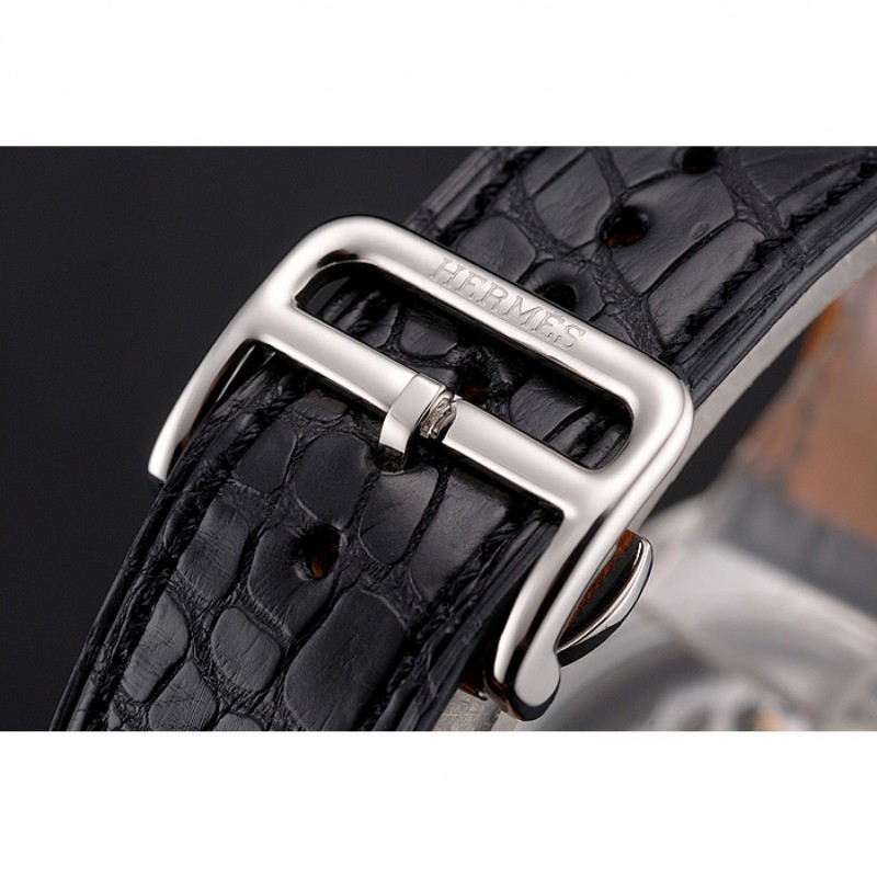 Bracelet:bracelet en cuir de crocodile noir avec Hermes gravé en acier inoxydable poli push-presse fermoir-boucle crochet