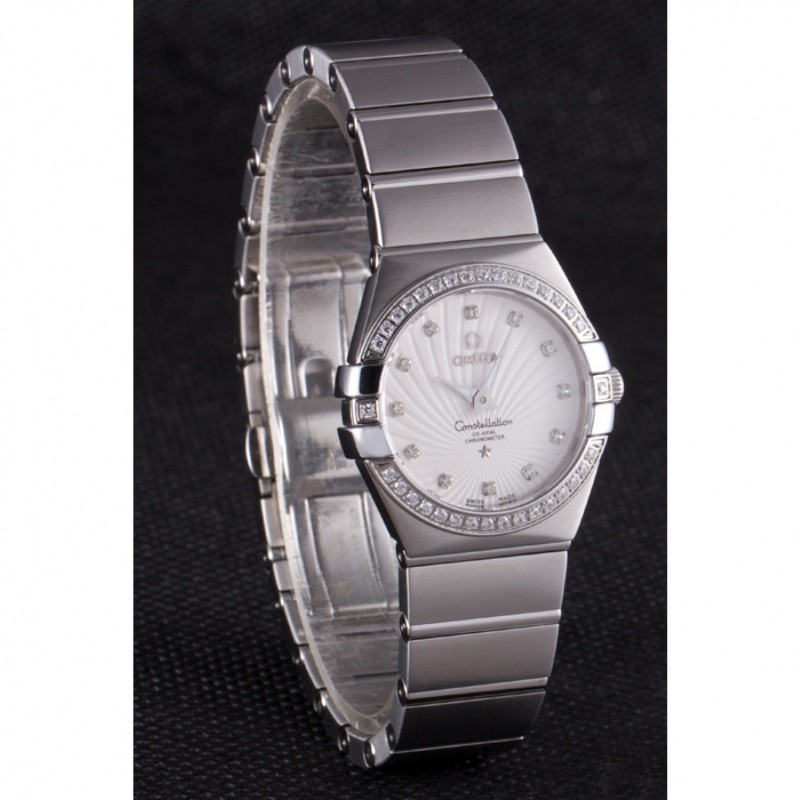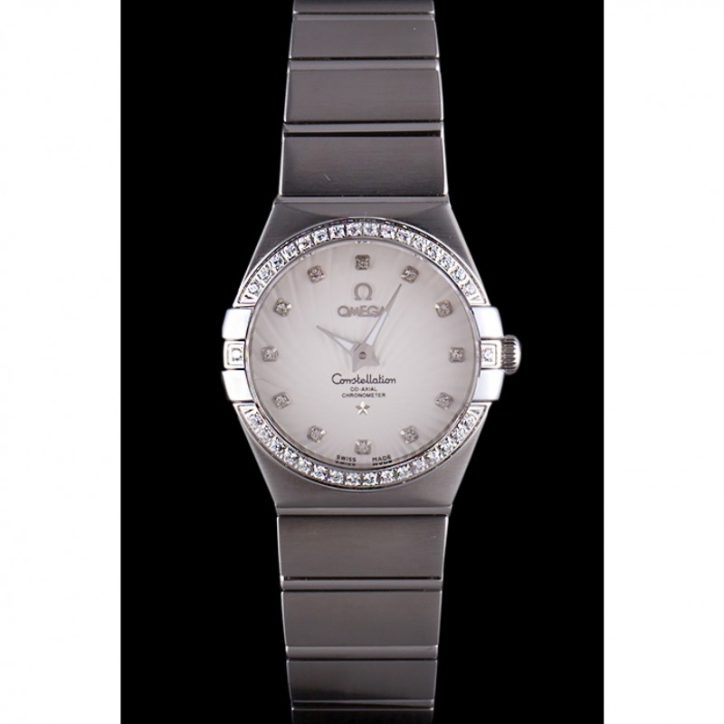 Swiss Lady Omega Constellation Cristal Argent incrustées Lunette Radial Cadran 80291