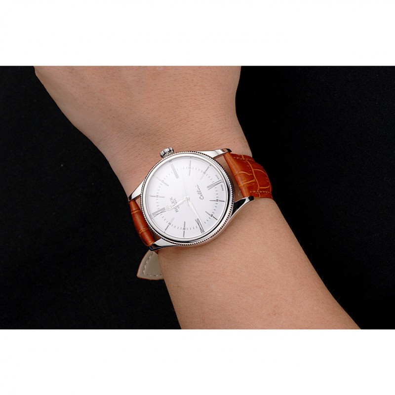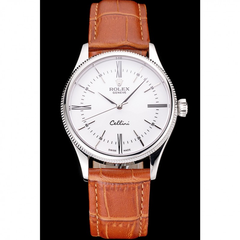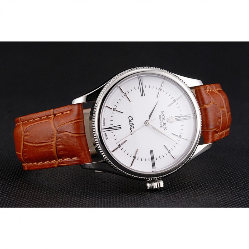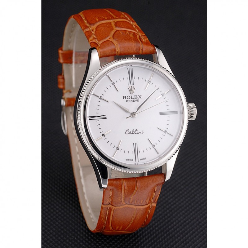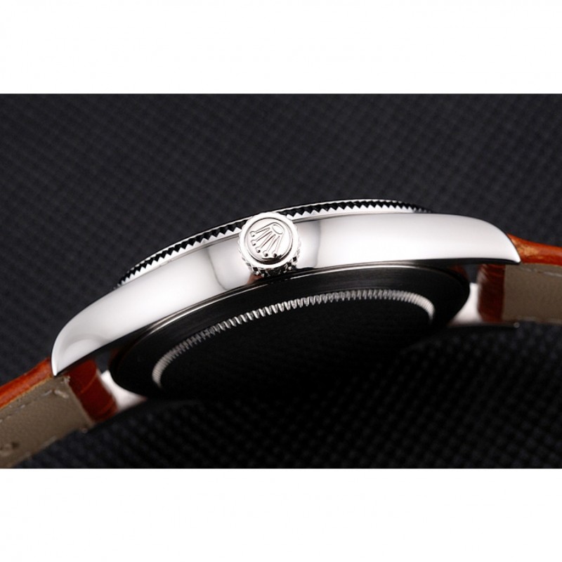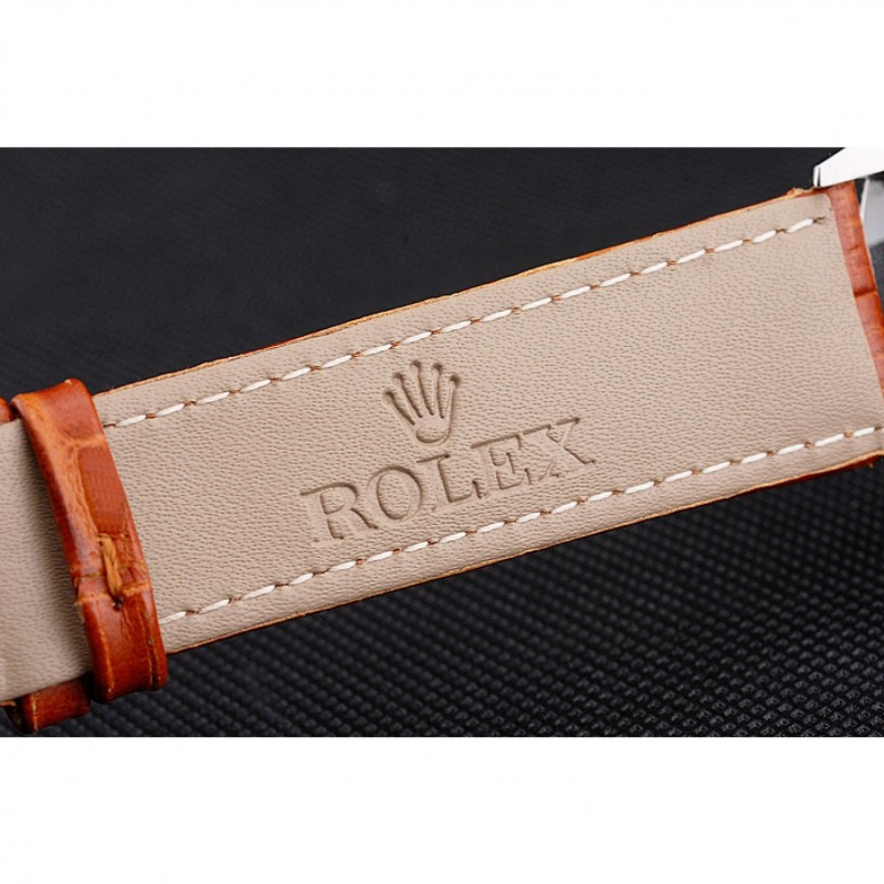 Bracelet:Rolex et logo chaleur embossé bracelet en cuir de crocodile brun clair avec Rolex logo gravé en acier inoxydable poli fermoir crochet boucle