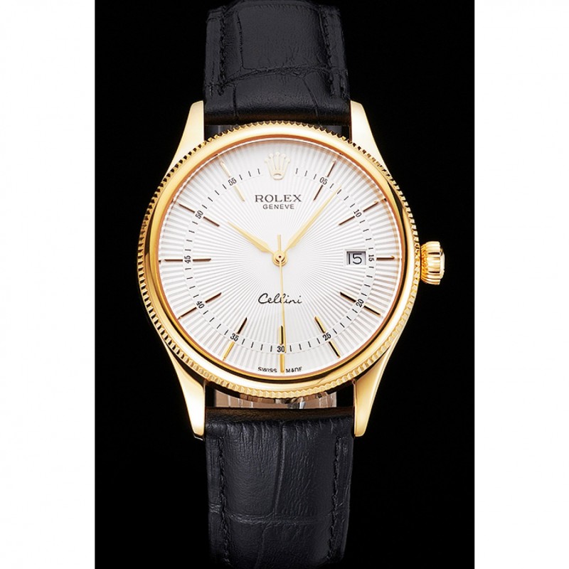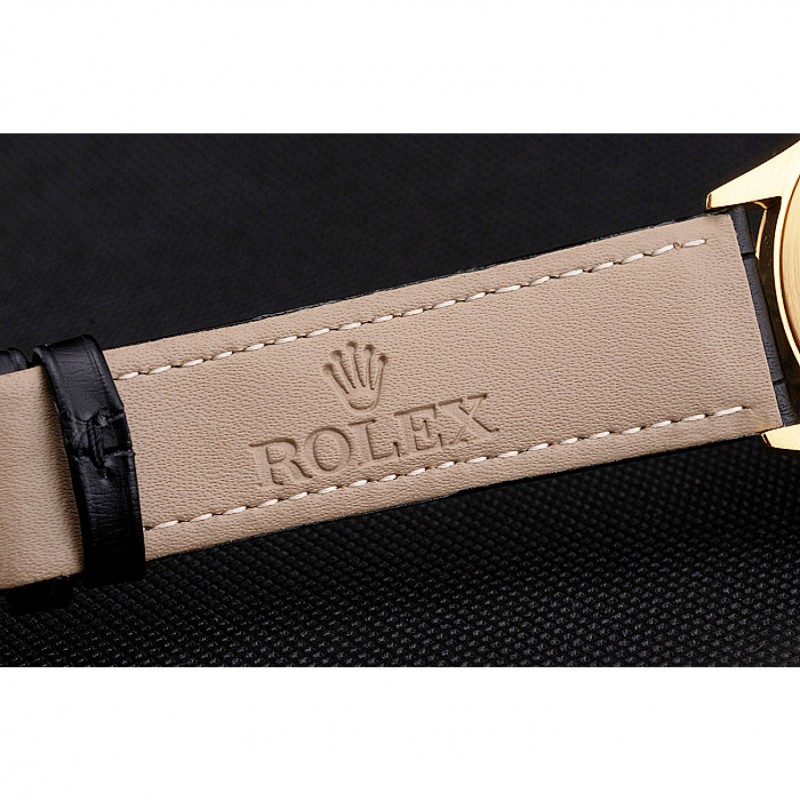 Bracelet:Rolex et logo chaleur bracelet en cuir croco noir avec logo Rolex gravé or jaune 18 carats plaqué fermoir crochet boucle