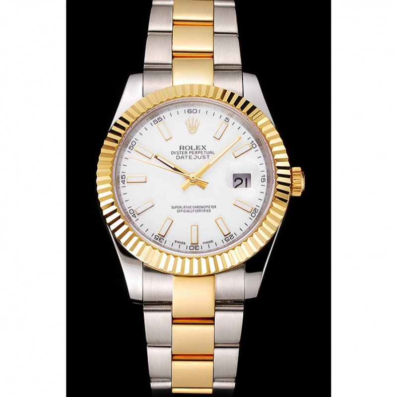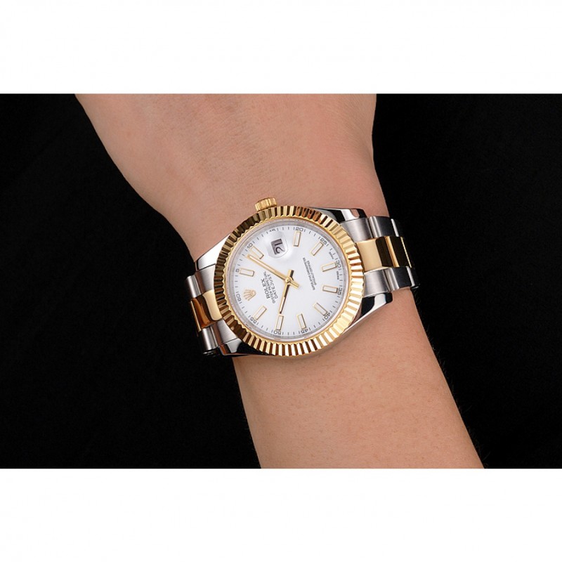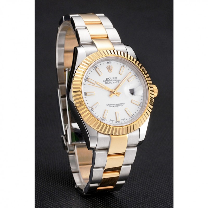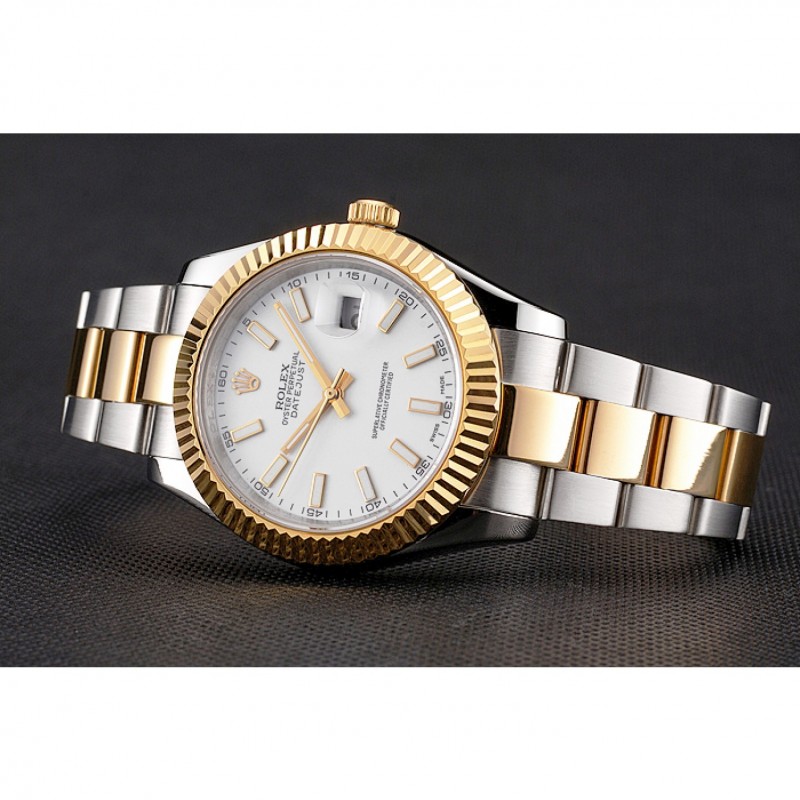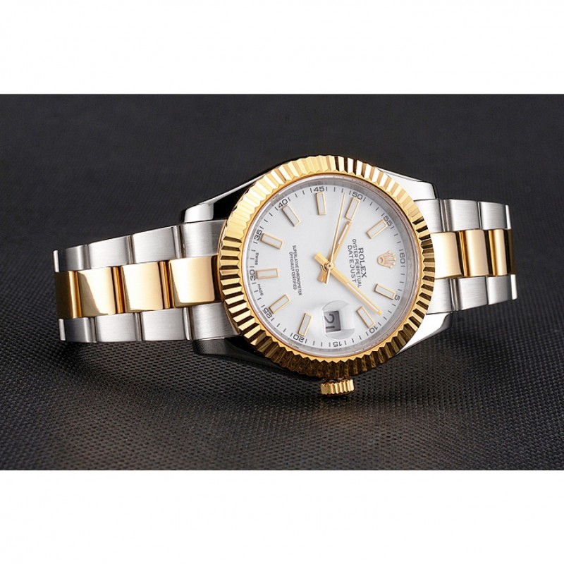 Bracelet:en acier inoxydable brossé et or jaune 18 carats bracelet lien plaqué or avec le logo Rolex gravé fois en boucle caché