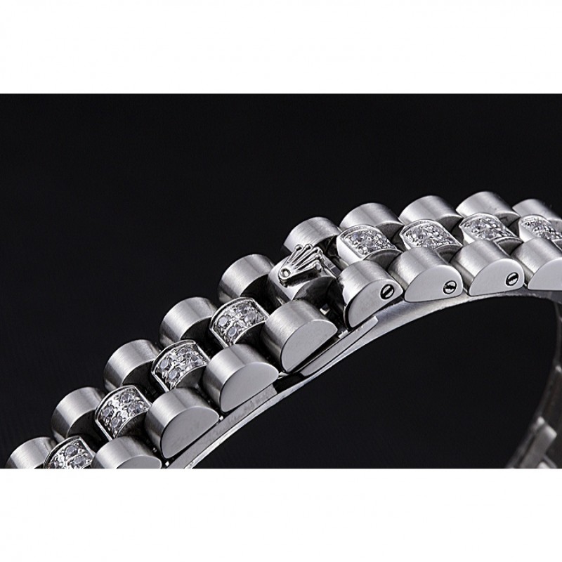 Bracelet:Diamond incrustée maillons en acier inoxydable poli bracelet avec cutwork Rolex boucle déployante logo