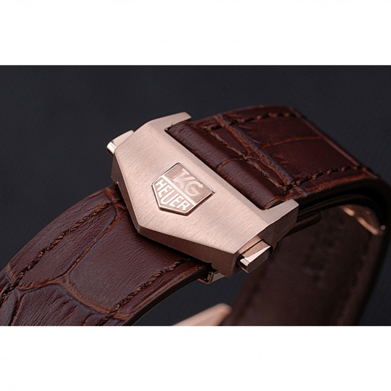 Bracelet:Tag Heuer chaleur en relief sangle crocodile en cuir marron avec Tag Heuer gravé brossé mousqueton poussoir à libération acier inoxydable