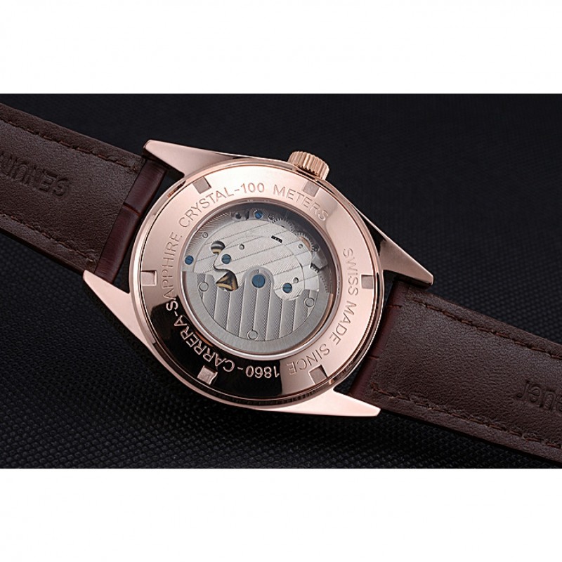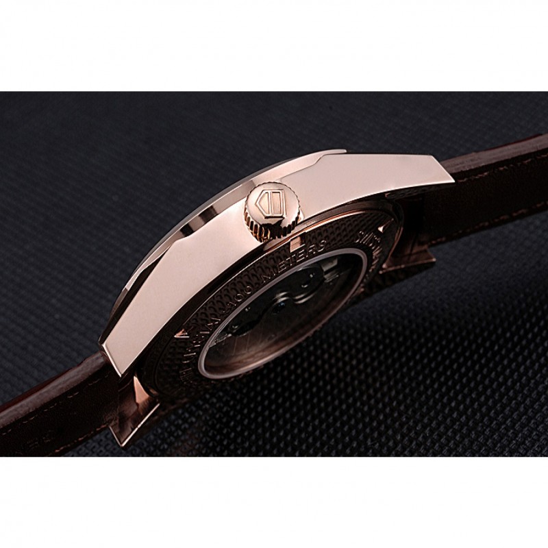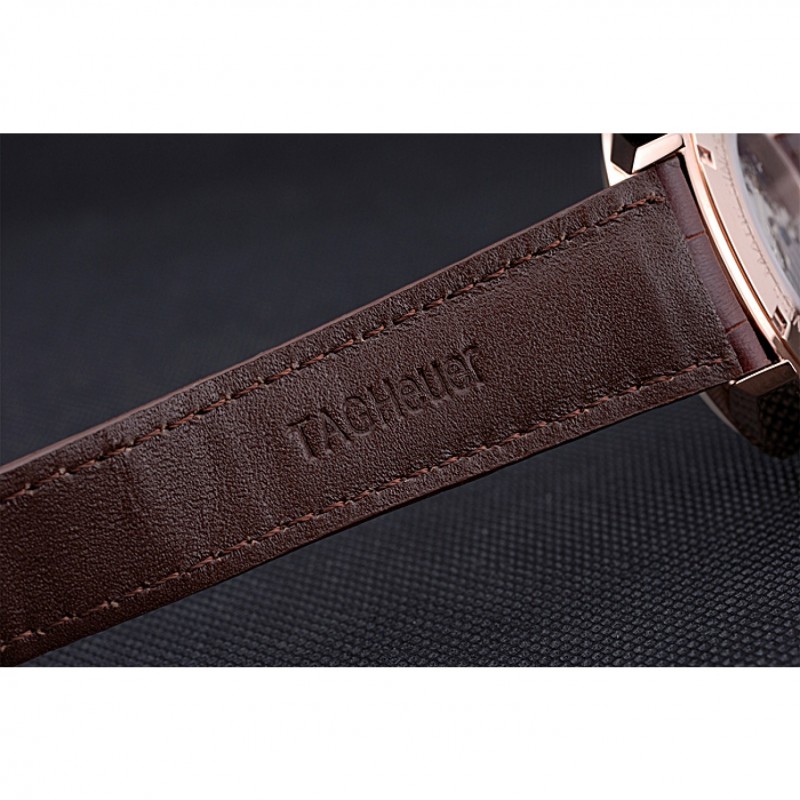 Retour:18k Rose- plaqué or enfichable à l’arrière avec la mécanique transparente révélant centre et Tag Heuer gravure