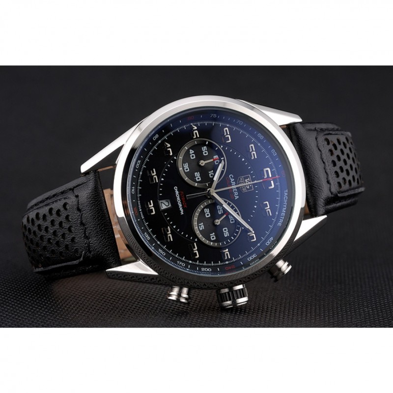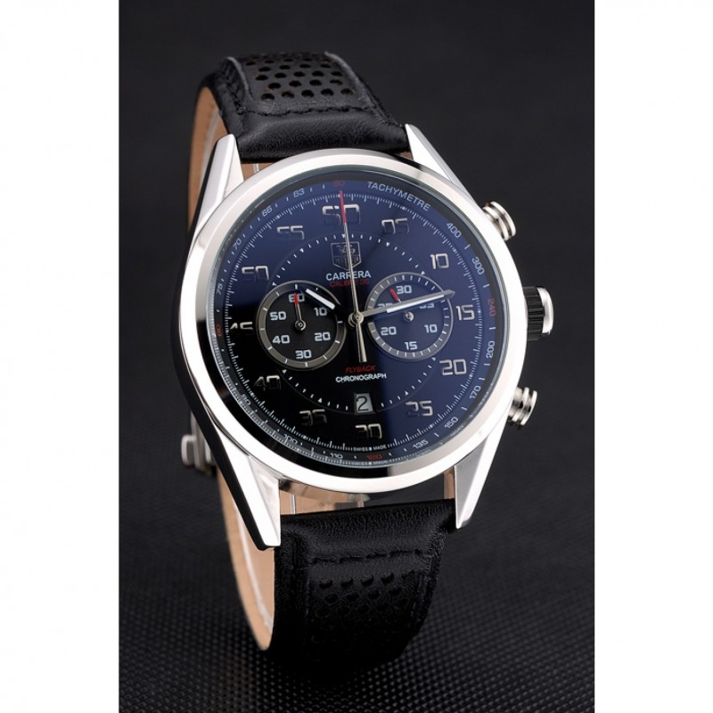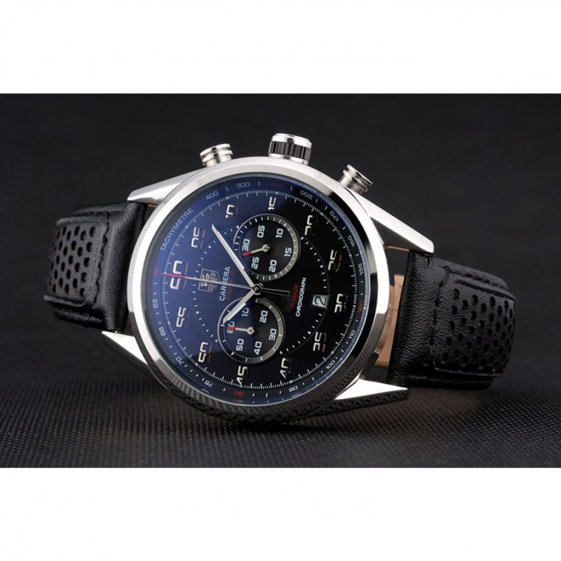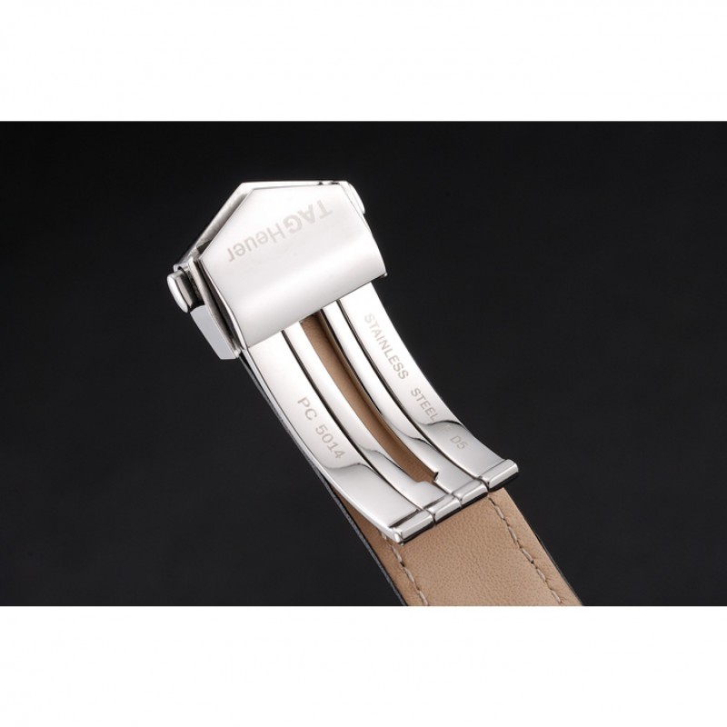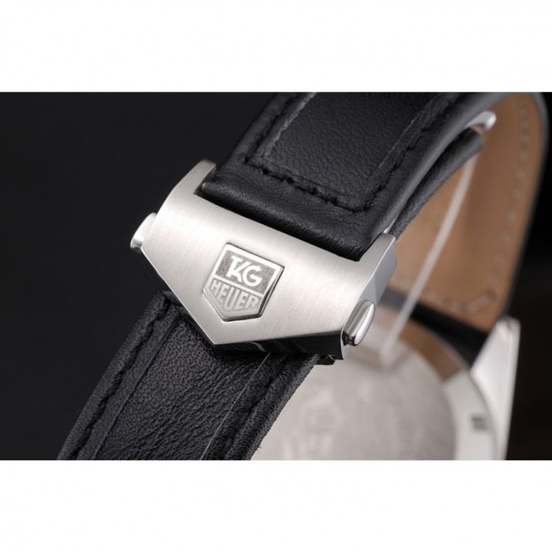 Bracelet:tag Heuer chaleur bracelet en cuir de veau noir gravé tag Heuer gravé brossé push-libération de pliage en boucle en acier inoxydable