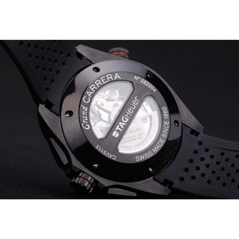 Retour:Ion-plaqué retour enfichable avec la mécanique révélant centre transparent et Tag Heuer gravures Carrera