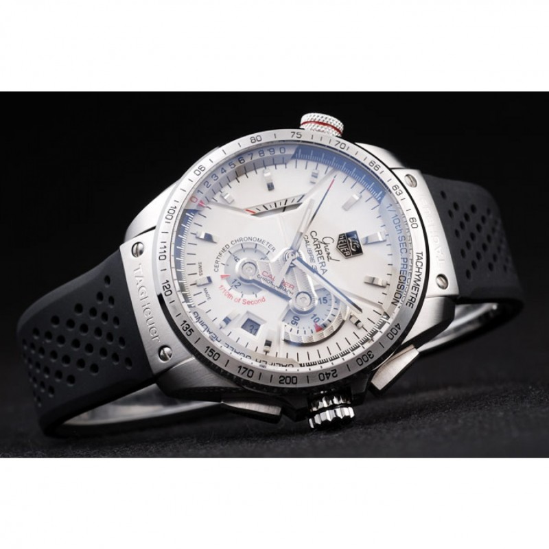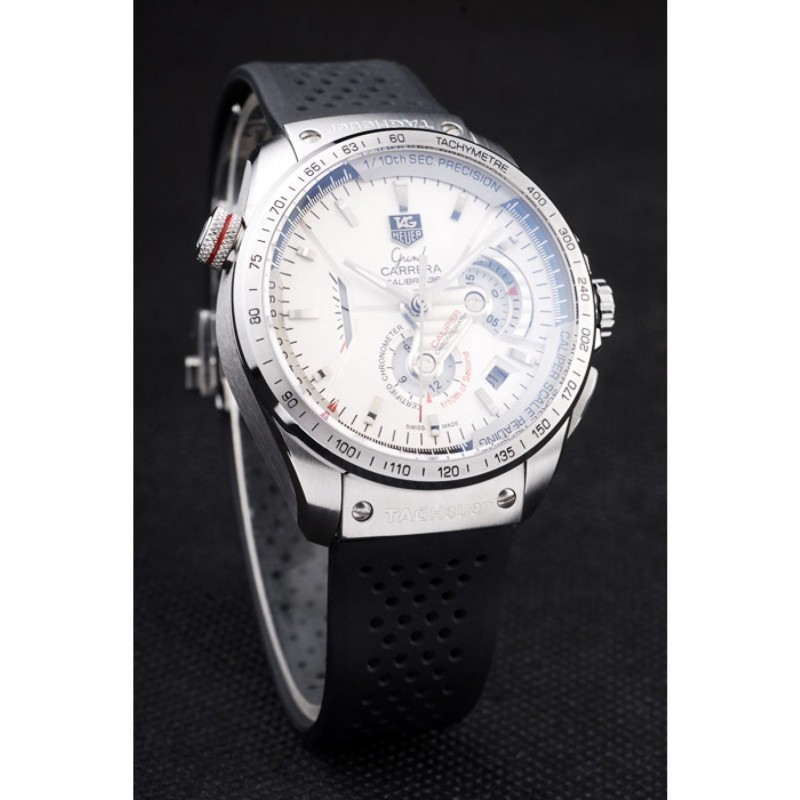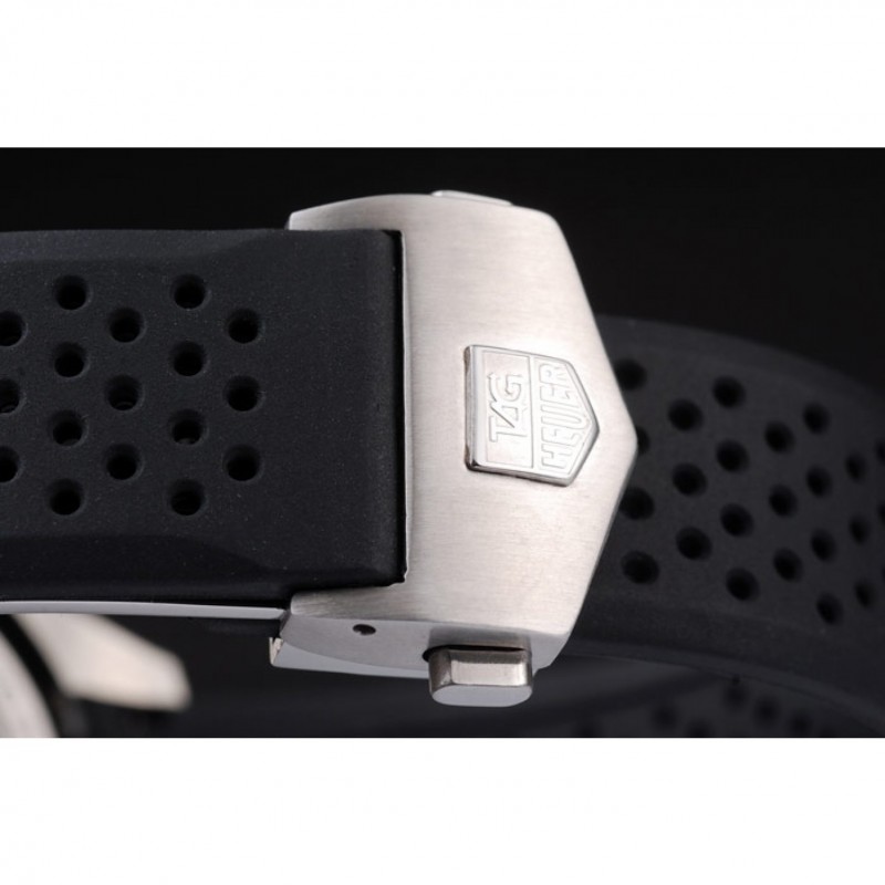 Bracelet:courroie perforée en caoutchouc noir avec libération à bouton-poussoir en acier inoxydable brossé plier en boucle avec Tag Heuer gravure