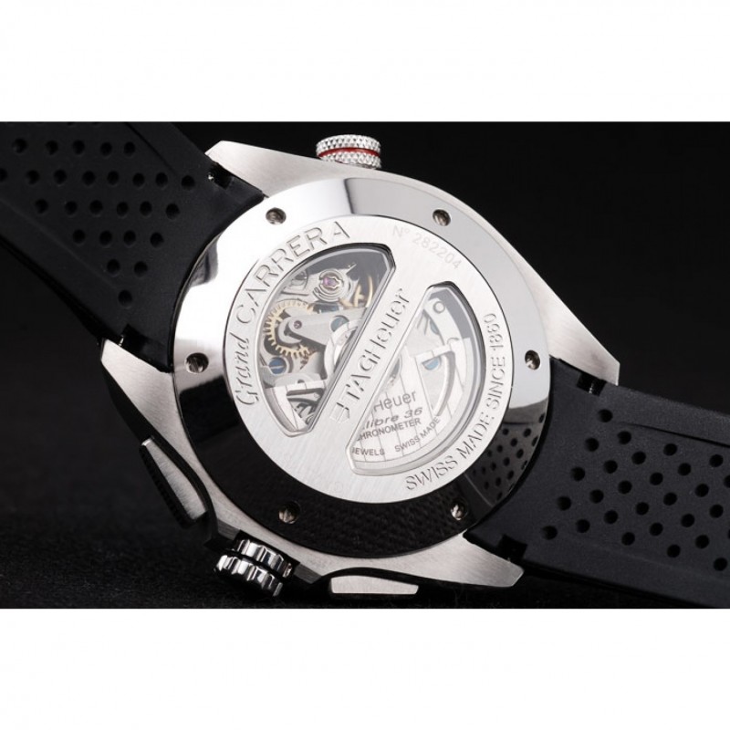 Retour:sonnettes en acier inoxydable dans le dos avec la mécanique transparentes révélant centre et TAG gravures Heuer