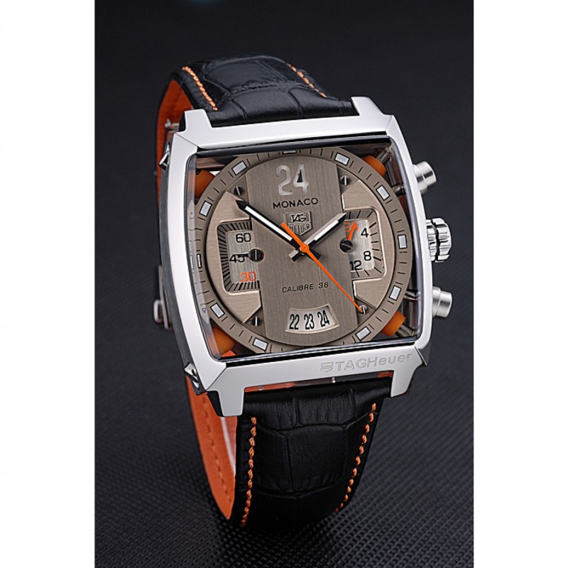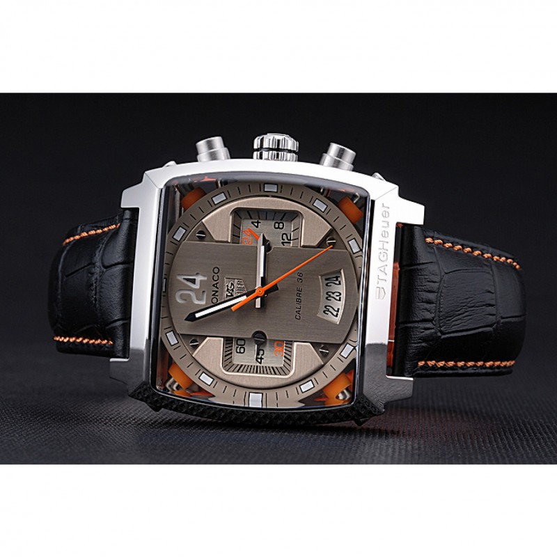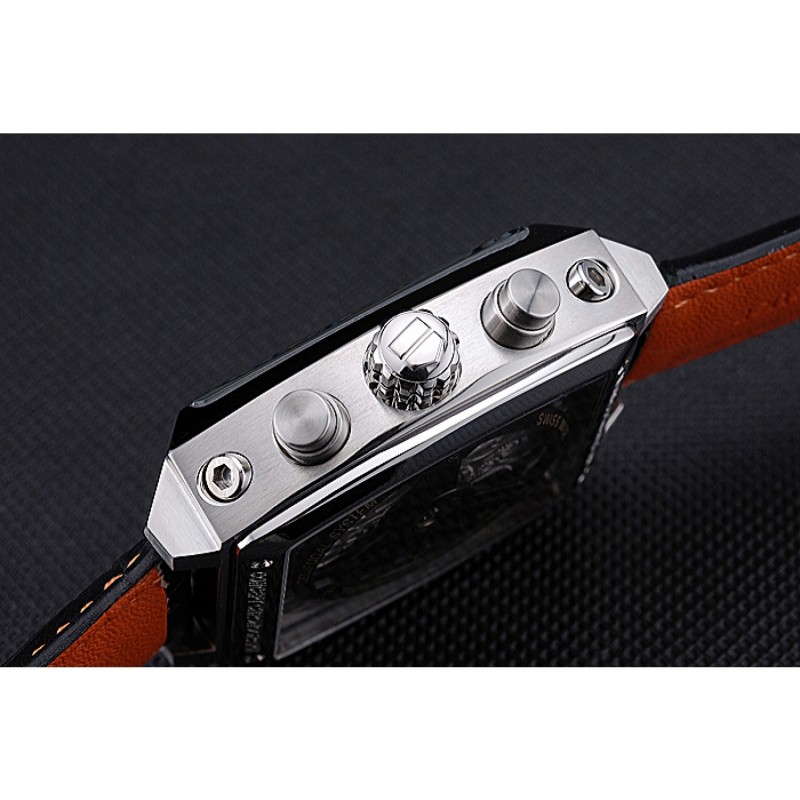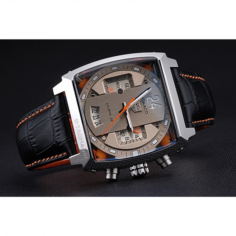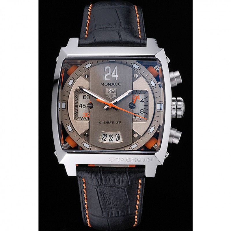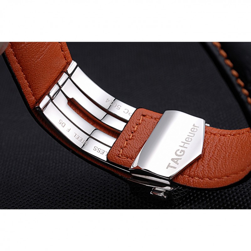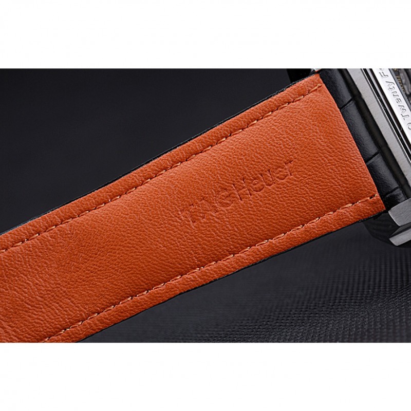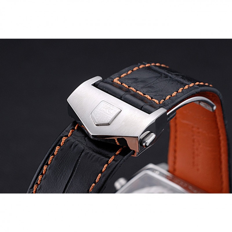 Bracelet :chaleur Heuer en relief crocodile bracelet en cuir noir avec coutures de fil orange et Tag Heuer gravé brossé mousqueton push-sortie en acier inoxydable
