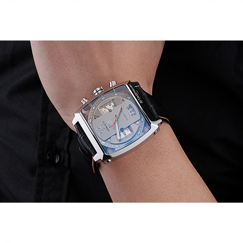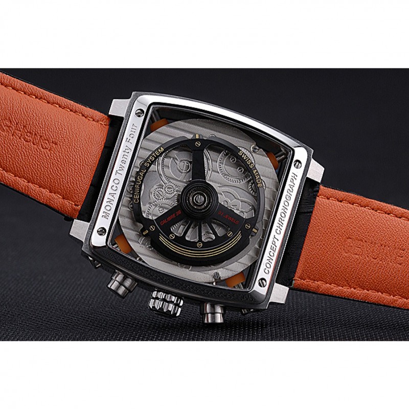 Retour:acier inoxydable poli vissé vers le bas retour avec la mécanique révélant fenêtre et Monaco Twenty Four Gravure