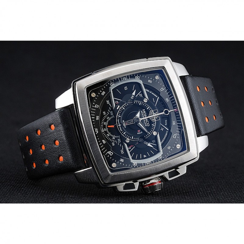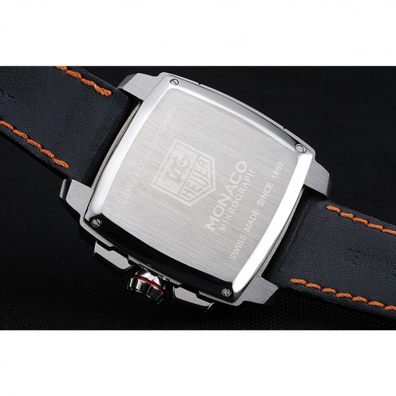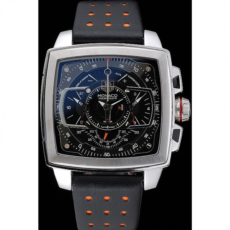 Tag Heuer Monaco Mikrograph bracelet en cuir noir cadran noir 7923