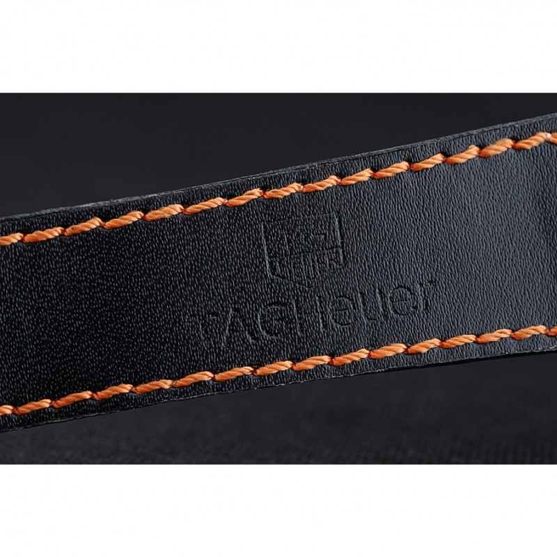 Bracelet:Heat relief Tag Heuer noir bracelet en cuir perforé avec coutures orange à l’intérieur et à l’acier inoxydable de pliage en boucle avec la fonction de déverrouillage du poussoir
