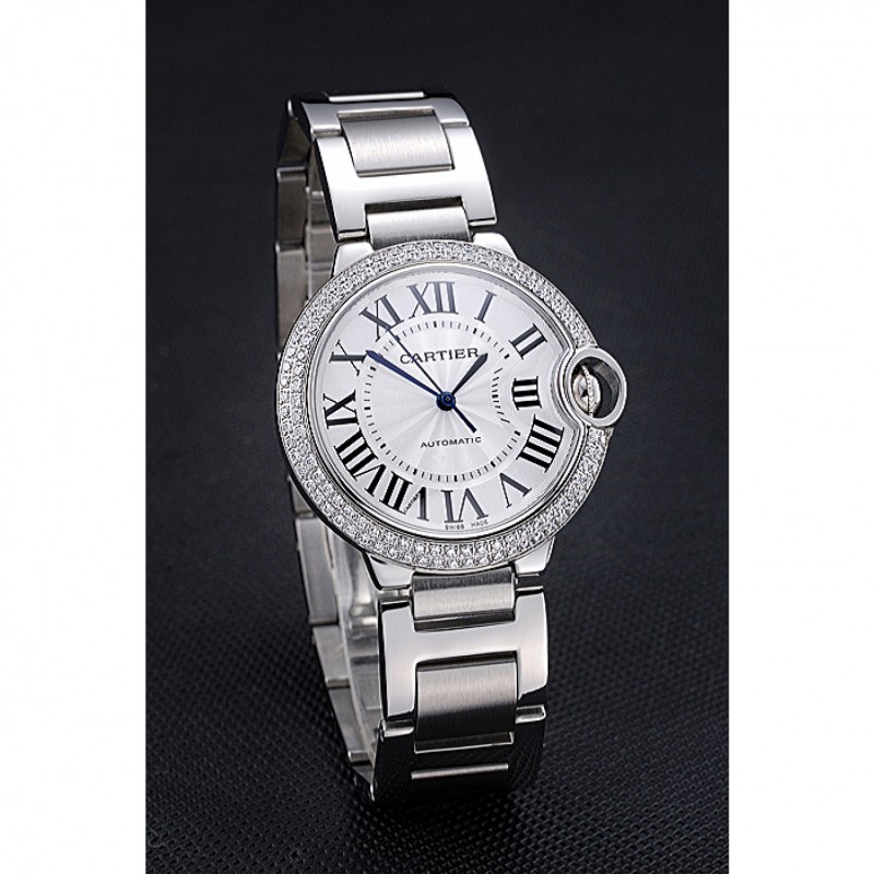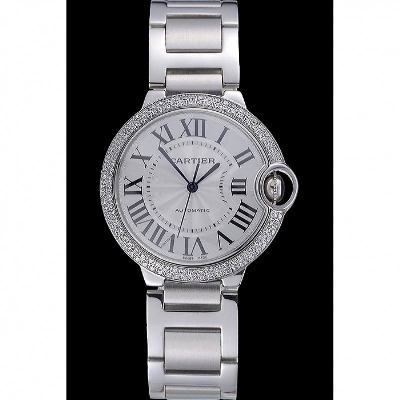 Suisse Cartier Ballon Bleu Cadran Argent diamant Case Bracelet en acier inoxydable