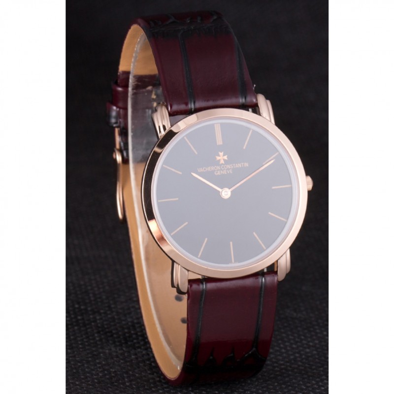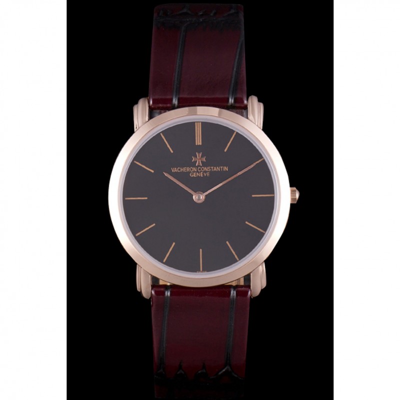 Réplique de Vacheron Constantin Patrimony Cadran Noir Or Rose Rich Maroon Bracelet en cuir